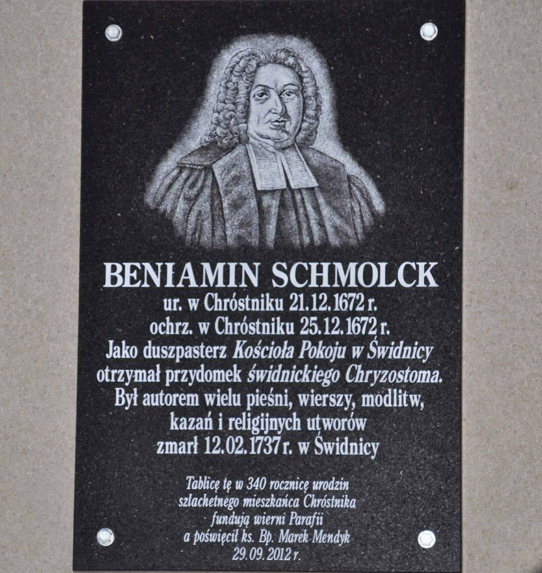 Podczas tego spotkania w sposób szczególny wspomniano księdza Benjamina Schmolcka (1672 – 1737) – ewangelickiego duchownego urodzonego w Chróstniku, wybitnego śląskiego pieśniarza i poety, autora wielu ewangelicznych pieśni i modlitw, a także utworów o tematyce świeckiej.