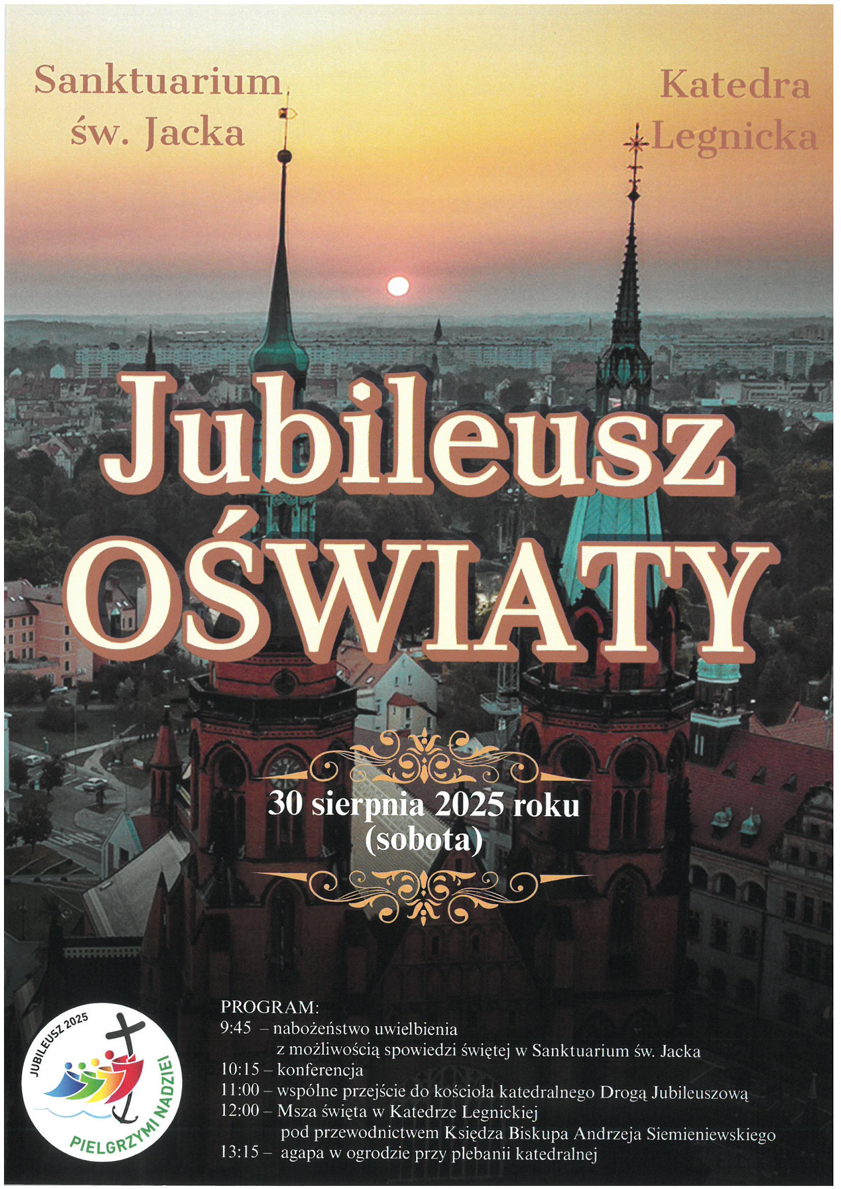 Spotkanie rozpocznie się o godz. 9.45 w Sanktuarium Św. Jacka. Następnie uczestnicy przejdą drogą jubileuszową do Katedry, gdzie o godz. 12.00 zostanie odprawiona Msza św. pod przewodnictwem biskupa legnickiego Andrzeja Siemieniewskiego.