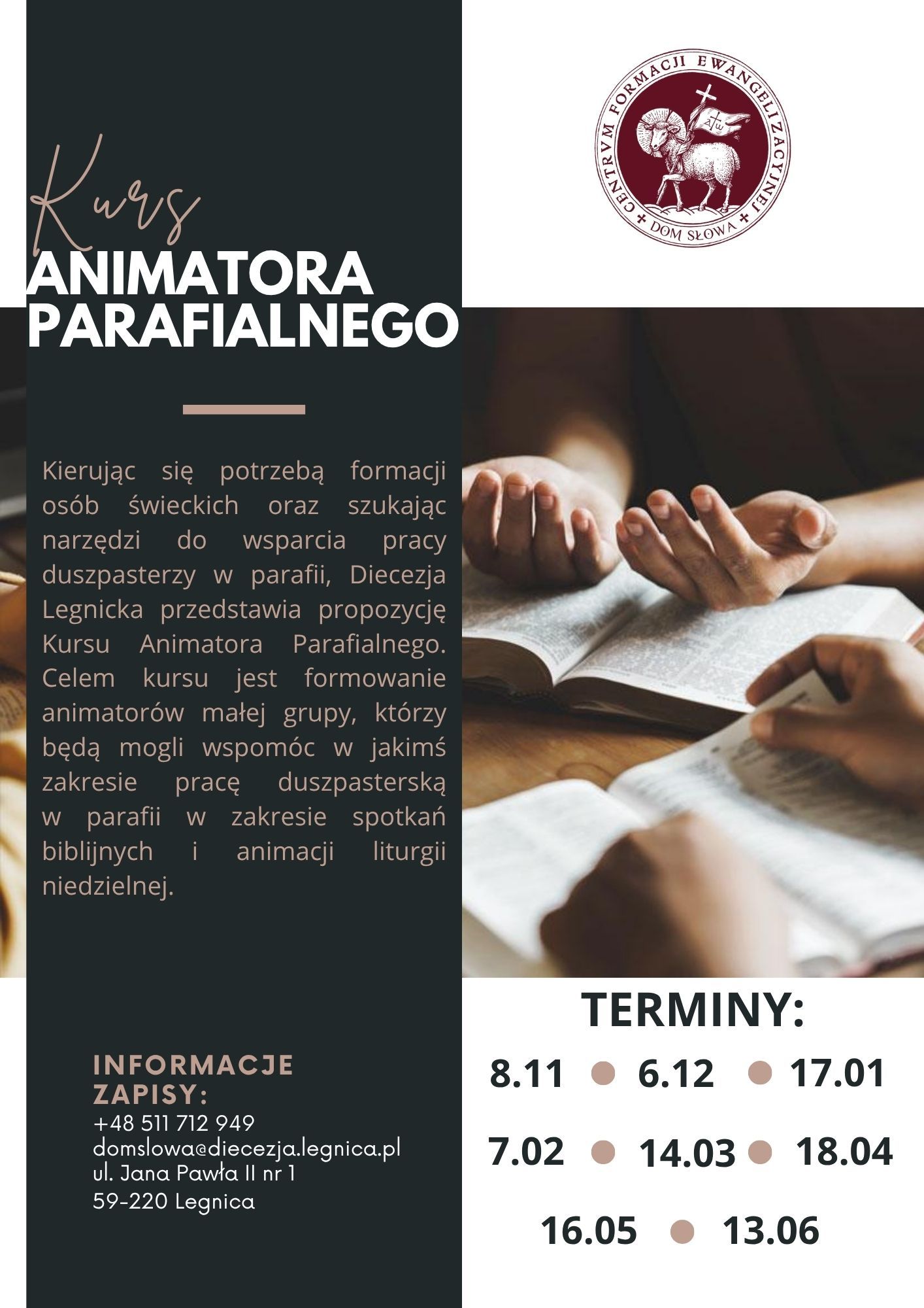 Celem kursu jest formowanie animatorów małej grupy, którzy będą mogli wspomóc w jakimś zakresie pracę duszpasterską w parafii w zakresie spotkań biblijnych i animacji liturgii niedzielnej.