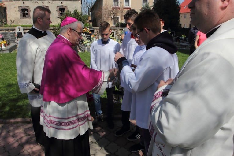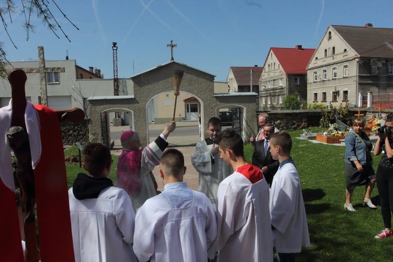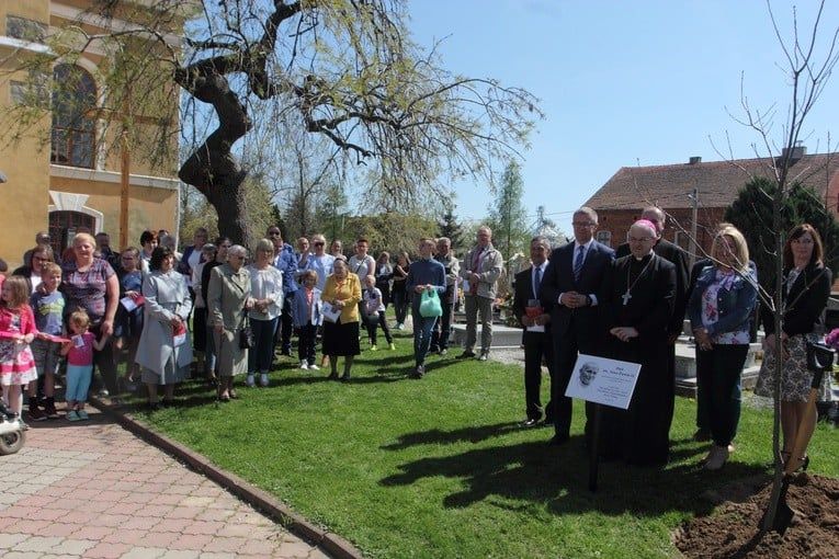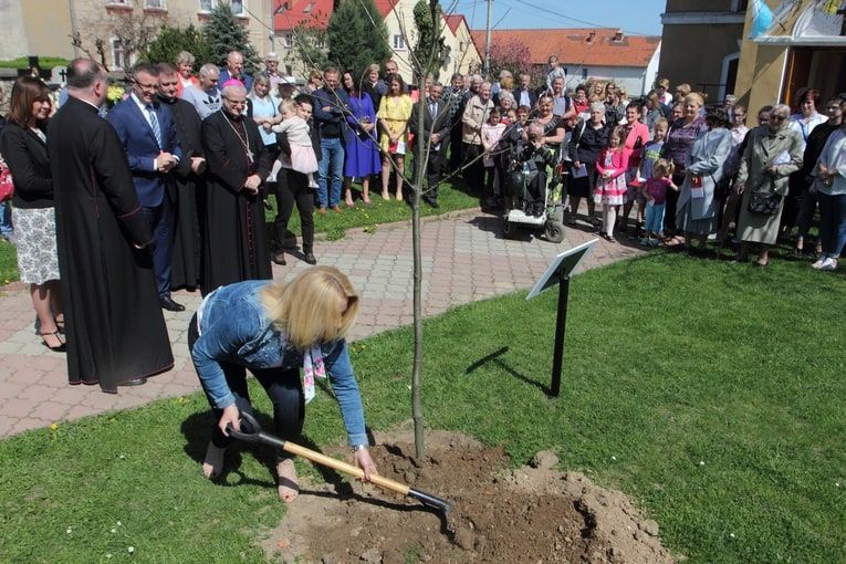 Pierwsze drzewo już jest a zostało zasadzone przez bp. Marka Mendyka.