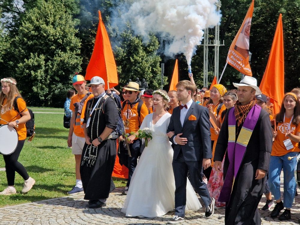 Na ostatnim etapie z Kawodrzy na Jasną Górę pielgrzymom towarzyszył biskup legnicki Andrzej Siemieniewski, który odwiedził każdą z 9 grup. Około godz. 12.00 kolorowa, rozśpiewana i szczęśliwa legnicka pielgrzymka weszła na jasnogórskie błonia. Tradycyjnie już pątnicy z salezjańskiej „6” mieli na głowach piękne wianki uplecione z polnych kwiatów, które zostawili przed figurą Matki Bożej. Natomiast „3” z Bolesławca odpaliła pomarańczowe race, a ich przyjście oznajmiły werble. W tej grupie wędrowali nowożeńcy. Ola i Marek 2 lata temu poznali się na pielgrzymkowym szlaku i w czerwcu powiedzieli sobie sakramentalne "tak".