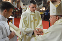 Ks. Roman Charkot, ks. Michał Kamiński, ks. Mateusz Maleńczuk, ks. Tomasz Piątkowski - to dzisiejsi neoprezbiterzy. W legnickiej Katedrze w południe biskup Zbigniew Kiernikowski udzielił święceń prezbiteratu czterem diakonom, którzy przez 7 lat przygotowywali się do tego dnia. W uroczystości wzięli biskup Marek Mendyk, przełożeni seminarium i pracownicy kurii biskupiej, księża z diecezji, siostry zakonne oraz rodzice i krewni oraz liczna rzesza wiernych z parafii i przyjaciół.