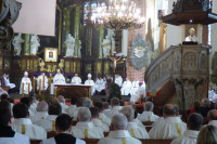 Homilię wygłosił legnicki biskup pomocniczy Marek Mendyk. Nawiązując do odczytywanego tego dnia Słowa Bożego, zwrócił uwagę, że uczy nas ono poznawania Boga i siebie samego. - Wszystkim Pan Bóg daje możliwość doświadczenia tego, co odczuwał i myślał celnik z dzisiejszej Ewangelii. To droga dochodzenia do autentycznej pokory, na której Bóg pomaga nam zrozumieć, że jest o wiele większy od naszego serca i zawsze nam przebacza – mówił bp Mendyk.