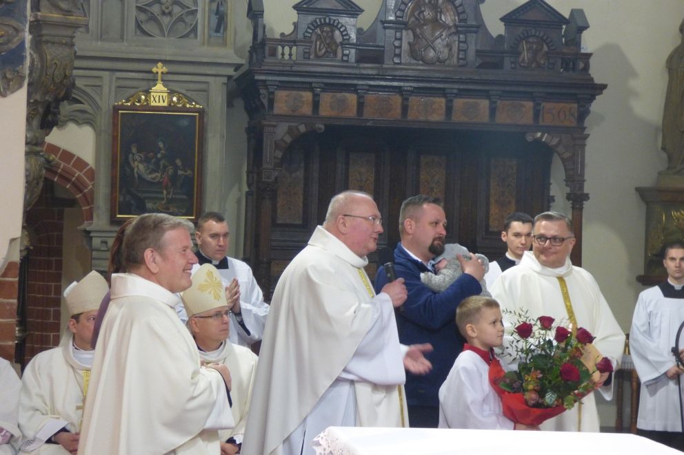 - Dokonania księdza Biskupa w tej diecezji, to cały ciąg trwałych wydarzeń, które są zapisanie i pozostaną jako trwałe znaki. Dzisiaj, ksiądz Biskup jako senior, dalej wiernie służy swoją posługą diecezji. Życzę, żeby to dzisiejsze przeżywanie jubileuszu, było kolejnym elementem umacniającym we wdzięczności i w oddawaniu Bogu chwały, w społeczności Kościoła - mówił biskup legnicki Zbigniew Kiernikowski, składając swoje życzenia.