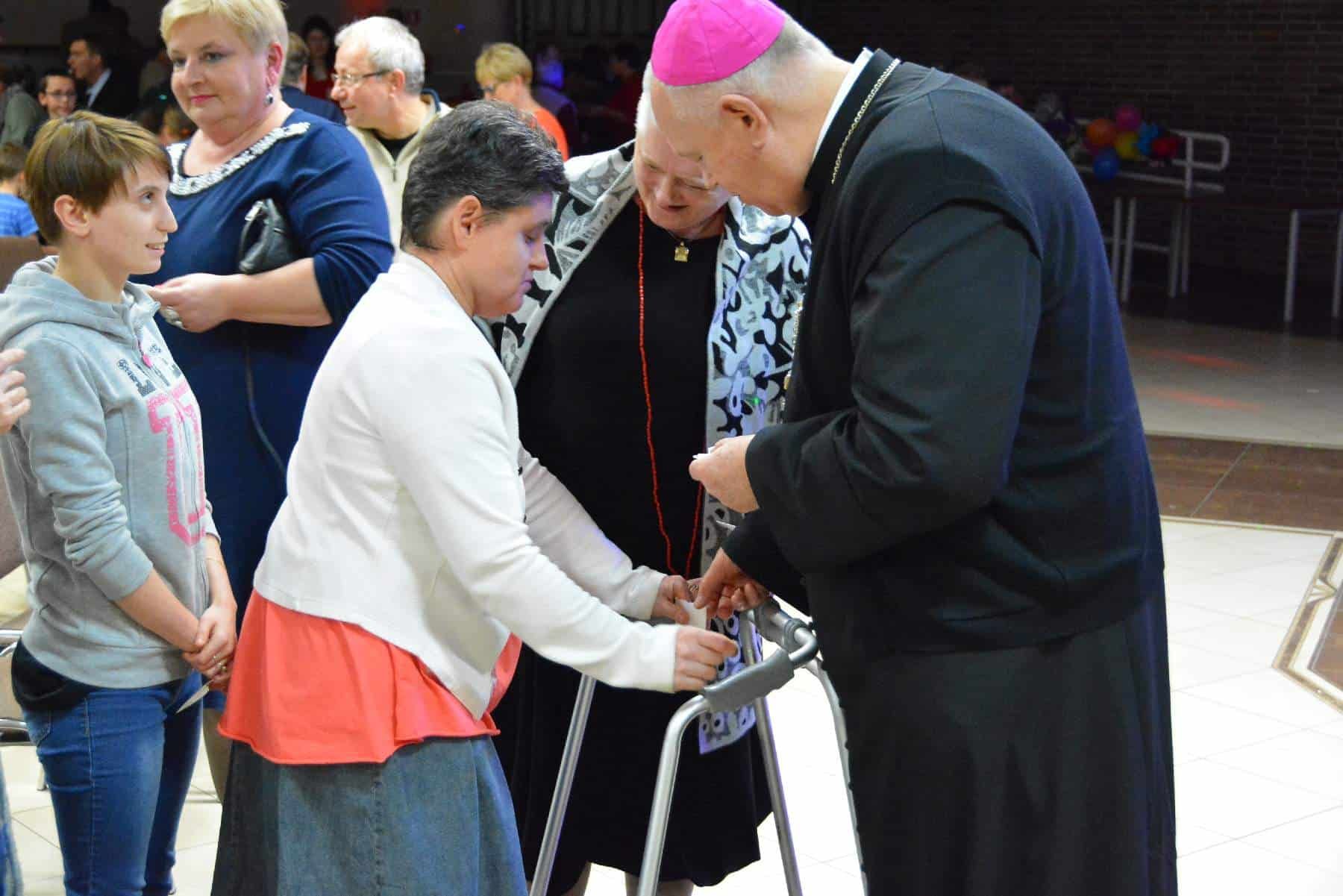 Ponad 200 osób bawiło się na balu, który odbył się w czwartek w Centrum Spotkań im. Jana Pawła II w Legnicy. Osoby niepełnosprawne i ich przyjaciele z radością czekają na to doroczne wydarzenie gromadzące tak wielką liczbę uczestników. Spotkanie rozpoczęło się od Mszy św. w kościele MB Królowej Polski, której przewodniczył biskup legnicki Zbigniew Kiernikowski. Przy ołtarzu stanął również bp Marek Mendyk, ks. Robert Serafin i ks. Artur Trela z legnickiej Caritas oraz ks. Bogusław Drożdż. Po wspólnej modlitwie odbył się mini koncert kolęd i pastorałek. Kolejnym momentem było łamanie się opłatkiem i składanie życzeń. Po tej części rozpoczął się bal, na zakończenie którego odbył się pokaz sztucznych ogni.