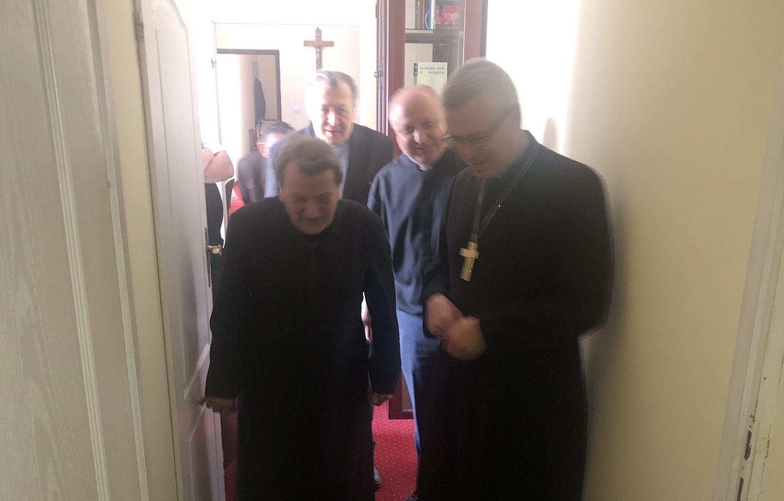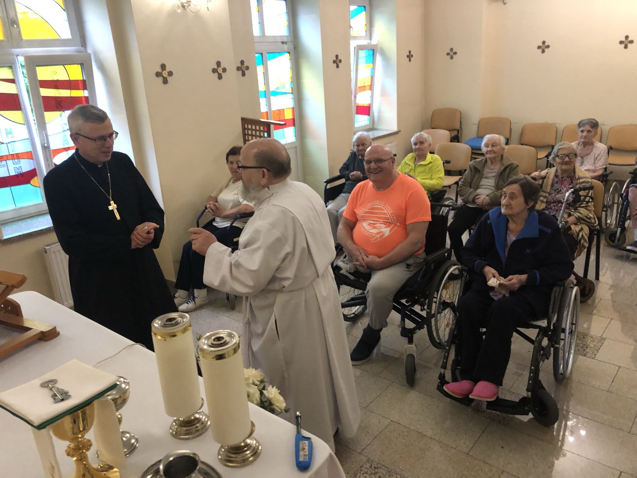 Następnie Biskup Legnicki przybył do Domu Księży Emerytów, gdzie spotkał się z pracownikami świeckimi i odwiedził kilku księży emerytów.
