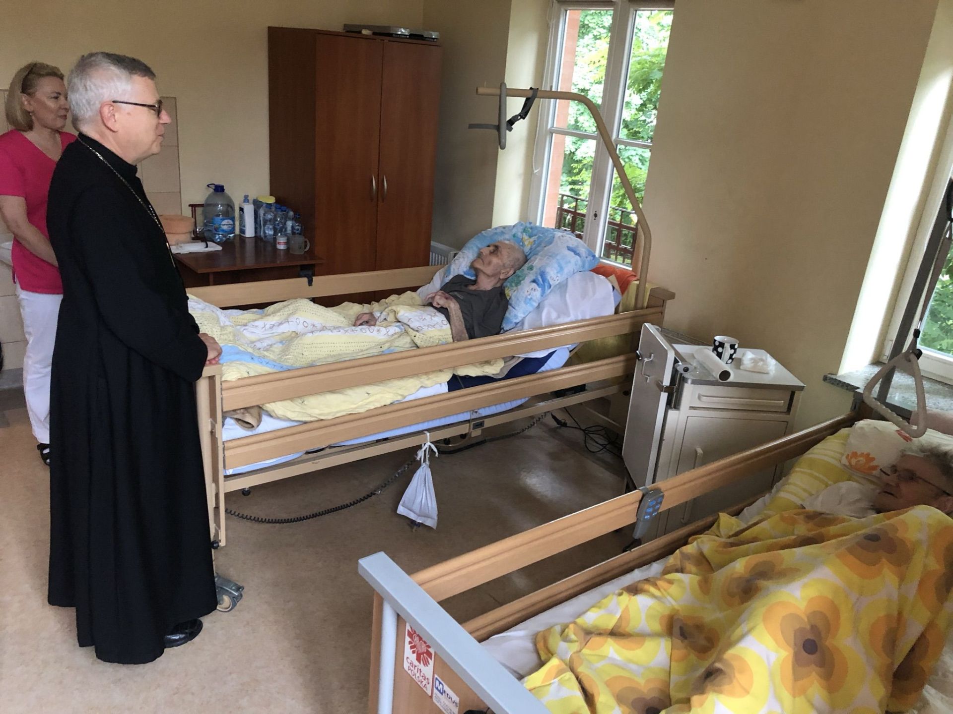 W Zakładzie Opiekuńczo-Leczniczym w Legnicy Pasterz Diecezji został zapoznany z personelem medycznym i spotkał się z pacjentami. Pani kierownik ZOL, Katarzyna Kardasz, przybliżyła zakres działań świadczonych przez tę placówkę. Była to również okazja do zapoznania się z osobami pracującymi w biurze Stacji Opieki Caritas Diecezji Legnickiej.