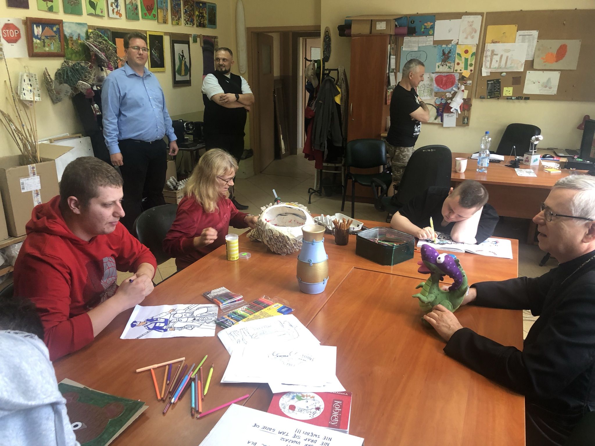 Biskup odwiedził także podopiecznych i pracowników Warsztatu Terapii Zajęciowej w Legnicy. Pani kierownik, Dorota Blachowska, przedstawiła pracowników i uczestników Warsztatu oraz zaprezentowała wykonane przez nich prace.