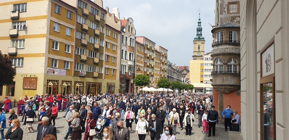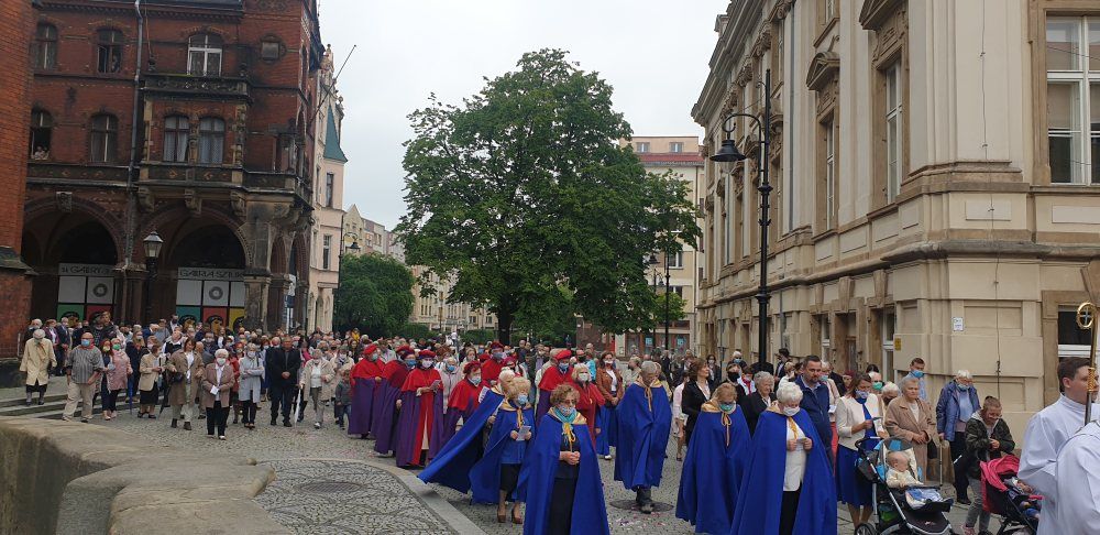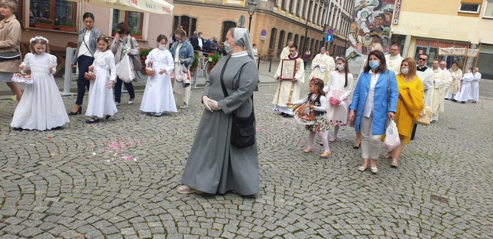 Z powodu epidemii koronawirusa uroczystość Najświętszego Ciała i Krwi Pańskiej była nieco inna niż wszystkie. Rozpoczęła się ona o godz. 10.00 w Katedrze, gdzie biskup Zbigniew Kiernikowski odprawił uroczystą Mszę świętą. Nie było centralnej procesji ulicami miasta, ale wokół legnickiego Rynku. Przygotowano jeden ołtarz przed Katedrą, natomiast wierni idąc w procesji 3 razy zatrzymywali się na błogosławieństwo Biskupa legnickiego Najświętszym Sakramentem. W procesji uczestniczyli kapłani, przełożeni WSD, siostry zakonne, a także orkiestra, chór, niesione były sztandary, nie zabrakło także dzieci, które sypały kwiaty. Uroczystość w tym roku była nieco skromniejsza i z mniejszą liczbą wiernych niż w latach poprzednich. Procesja eucharystyczna zakończyła się przed Katedrą, gdzie przy ołtarzu został odczytany fragment Ewangelii, a Biskup legnicki pobłogosławił wiernych Najświętszym Sakramentem. Na zakończenie odśpiewano pieśń „Boże coś Polskę”.