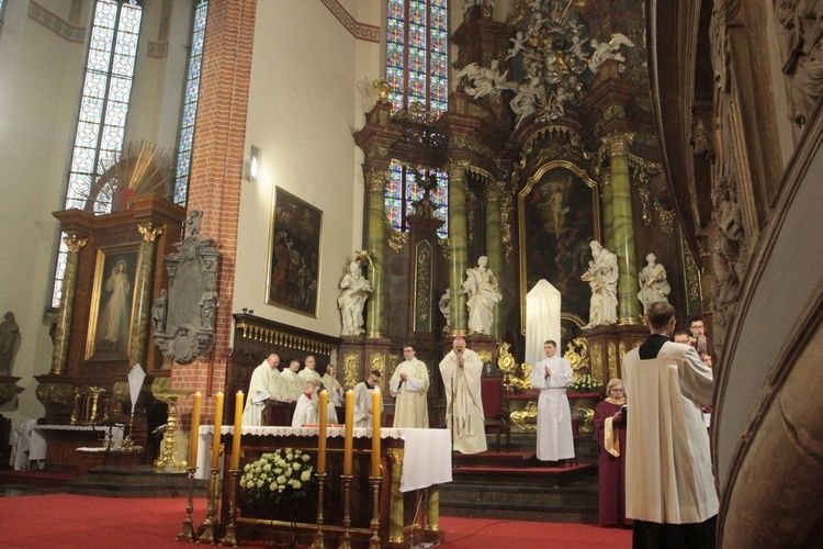 Liturgii przewodniczył biskup legnicki Zbigniew Kiernikowski. Wraz z nim przy ołtarzu stanęli kapłani pracujący na co dzień w parafii katedralnej, a także pracownicy Legnickiej Kurii Biskupiej oraz Wyższego Seminarium Duchownego Diecezji Legnickiej.