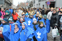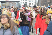 Ulicami Chojnowa przeszedł V Orszak Trzech Króli. Właściwie dwa orszaki wyruszyły o g. 11 z kościoła św. ap. Piotra i Pawła oraz z kościoła Niepokalanego Poczęcia NMP. W rynku połączyły się i wspólnie dotarły do św. Rodziny Józefa, Maryi i Jezusa, którzy czekali na na wszystkich na przygotowanej scenie. W orszaku uczestniczyli dorośli, ale głównie młodzież i dzieci, całe rodziny. To wydarzenie połączyło nie tylko pokolenia, ale i wszystkich mieszkańców miasta, którzy tłumnie przybyli, aby oddać pokłon narodzonemu Jezusowi. W inscenizacji pokłonu Mędrców uczestniczyły dzieci z chojnowskich szkół i przedszkoli oraz młodzież z Powiatowego Zespołu Szkół i z Drużyny Strzeleckiej. Uczestnikom tego przemarszu towarzyszyły dwie kapele góralskie, które prowadziły także wspólne kolędowanie. Było głośno, kolorowo i radośnie. Nawet deszcz nie zniechęcił do tego, aby wytrwać do ostatniego akcentu tegorocznego Orszaku, którym był polonez w wykonaniu uczniów i nauczycieli PZS. Na zakończenie na wszystkich uczestników czekał posiłek i pieczone jabłka.