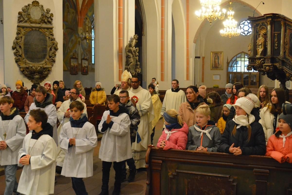 W sobotę 25 listopada w Chojnowie odbył się diecezjalny dzień wspólnot Eucharystycznego Ruchu Młodych. Do kościoła św. ap. Piotra i Pawła przyjechało ponad 140 dzieci wraz z opiekunami i duszpasterzami. Mszy św. rozpoczynającej spotkanie przewodniczył biskup pomocniczy Piotr Wawrzynek. Spotkanie było okazją do podziękowania ks. Markowi Osmulskiemu, który do tej pory pełnił funkcję moderatora diecezjalnego ERM-u i do przedstawienia nowego moderatora, którym został ks. Przemysław Głuszek, wikariusz chojnowskiej parafii. Po wspólnej modlitwie i krótkiej adoracji Najświętszego Sakramentu, integracyjna część dnia wspólnoty odbyła się w auli LO przy ul. Poźniaków.
