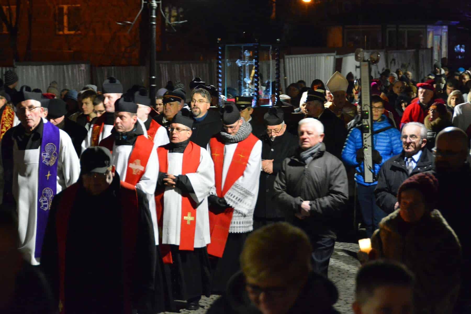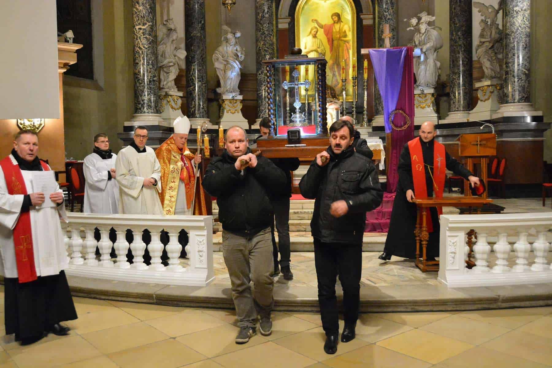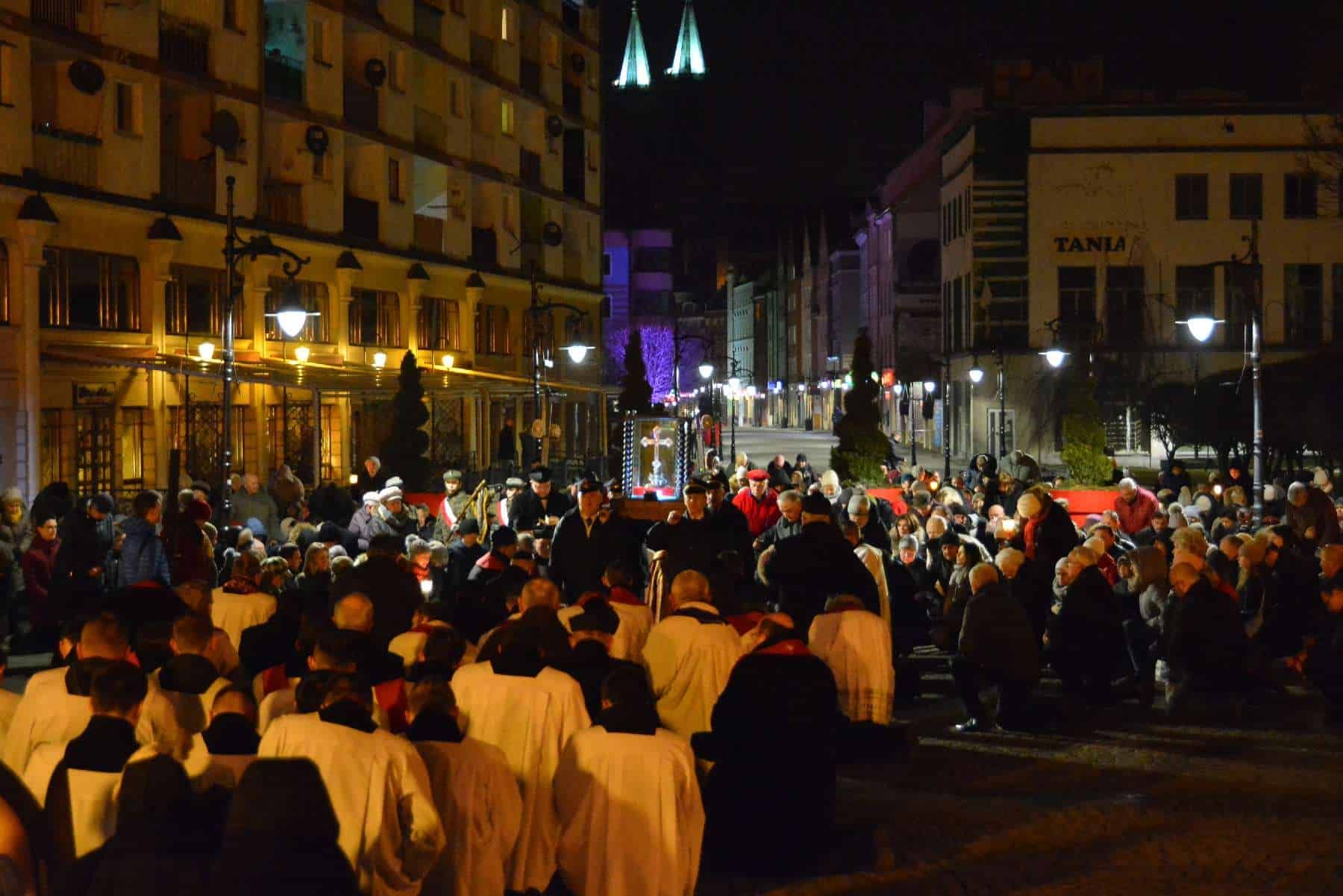 Około 700 osób wzięło udział w nabożeństwie Drogi Krzyżowej, jaka w piątek wyruszyła ulicami Legnicy. Nabożeństwo rozpoczęło się w kościele św. Jana Chrzciciela o g. 19,30. Przewodniczył mu biskup legnicki Zbigniew Kiernikowski. W nabożeństwie uczestniczyli: bp Marek Mendyk, księża pracujący w Legnicy, siostry zakonne, klerycy i przełożeni seminarium oraz rzesza wiernych z rożnych parafii. W tym roku na początku procesji niesione były relikwie Krzyża Świętego. Dlatego też rozważania do poszczególnych stacji przygotowane przez proboszcza katedry ks. Roberta Kristmana dotyczyły Drzewa Krzyża. Ostatnia stacja miała miejsce w legnickiej katedrze, gdzie po zakończeniu nabożeństwa wierni mogli jeszcze adorować relikwie Krzyża Św.