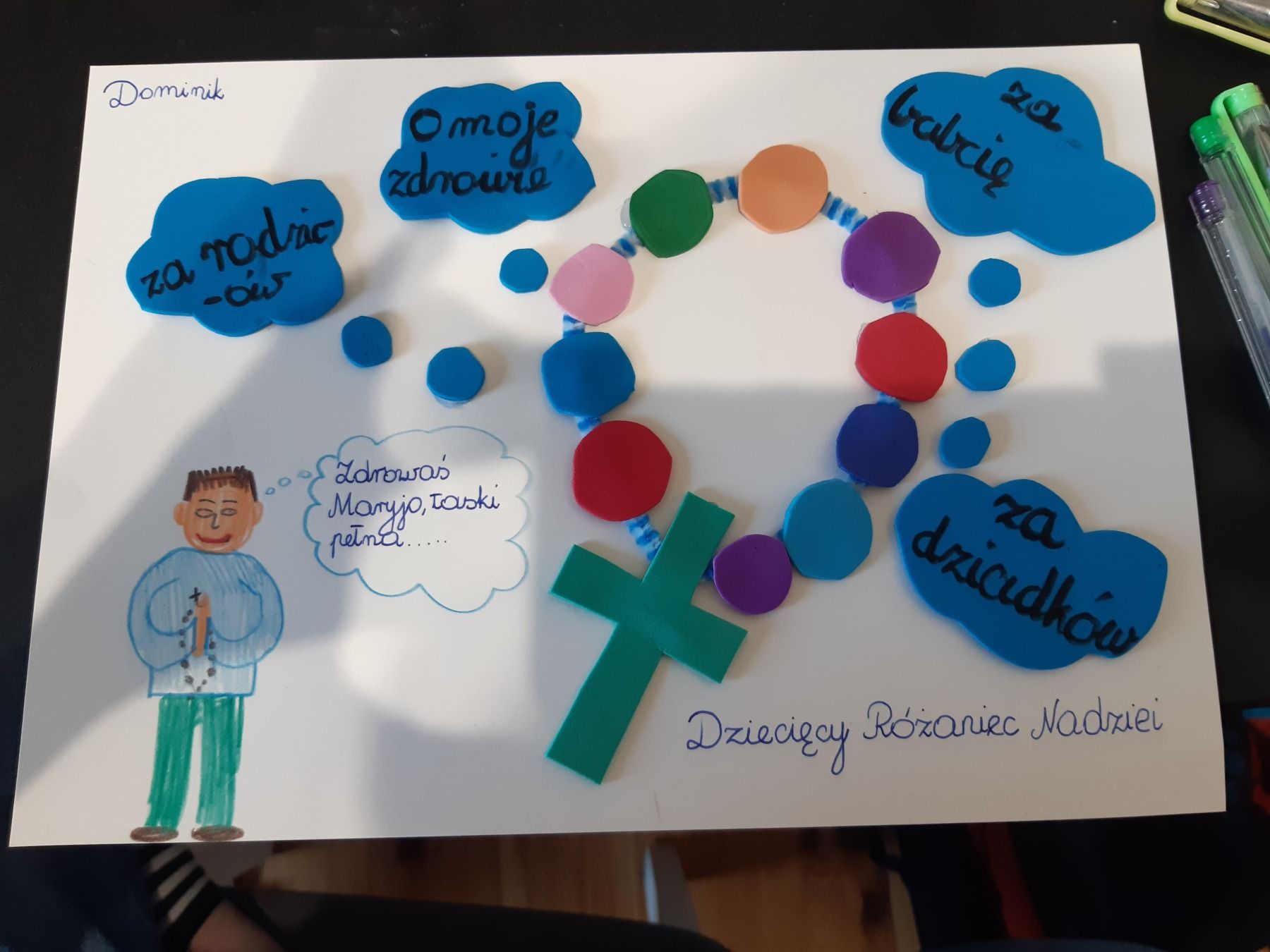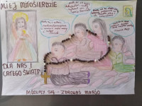 Dziecięcy Różaniec Nadziei – to inicjatywa zapoczątkowana przez dyrektora legnickiej Caritas ks. Roberta Serafina, która zrodziła się w czasie pandemii koronawirusa. Zaproponował, aby każde dziecko odmawiało dziesiątkę różańca świętego w intencji chorych i służby zdrowia. To nie wszystko. Poprosił, aby dzieci przygotowały rysunki dotyczące tej modlitwy, które sprawią z pewnością wiele radości personelowi oraz pacjentom 3 oddziału Zakładu Opiekuńczo-Leczniczego w Jeleniej Górze, gdzie leczą się osoby zakażone. Na odzew nie trzeba było długo czekać. Już po kilku dniach zaczęły napływać pierwsze prace. Również uczniowie Zespołu Szkolno-Przedszkolnego w Męcince, wzięli do ręki różaniec i razem z Maryją modlili się za osoby zakażone wirusem i za tych, którzy służą swoją pomocą, za całą służbę zdrowia i za swoje rodziny. Zachęceni do przesyłania prac plastycznych ochoczo zareagowali. Ponad 60 pięknych rysunków dotarło na adres szkoły. Od początku trwania kwarantanny dzieci zapewniają o modlitwie, a inicjatywa legnickiej Caritas pozwoliła w jeszcze większym stopniu zaangażować się w pomoc najbardziej potrzebującym. - Jestem dumna z postawy, jaką wyrażają moi uczniowie. Zawsze chętni, ofiarni i wyjątkowo zaangażowani, a do tego utalentowani. Prace, które wyrażają sposoby i intencje modlitwy pokazują jakie „anioły” mnie otaczają. Nie poprzestajemy w modlitwie, nieustannie prosimy dobrego Boga za wszystkich chorych, pracowników i wolontariuszy, aby pokonali wszelkie trudności. Pamiętamy, że modlitwa to największy dar - mówi katechetka Iwona Torończak-Kaczor.