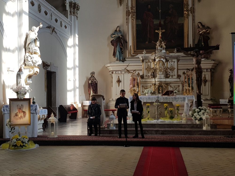 W parafialnej świątyni oddając cześć osobie naszego wielkiego rodaka, świętego Jana Pawła II wystąpiła Renata Galik, która śpiewa, sama komponuje, pisze wiersze, jest autorką powieści, jak również autorką tekstów o Janie Pawle II. Wysłuchaliśmy także jej pięknego świadectwa o wpływie osoby Jana Pawła II na jej twórczość. Koncert ten został poprowadzony przez uczniów Szkoły Podstawowej im. Bolesława Chrobrego w Nowogrodźu. Po "strawie duchowej" każdy uczestnik mógł nabyć słynne papieskie kremówki.