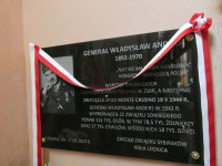 „Wybitny organizator i dowódca Armii Polskiej w ZSRR, a następnie zwycięzca spod Monte Casino 18 V 1944 r. Gen. Władysław Anders w 1942 r. wyprowadził ze Związku Sowieckiego ponad 115 tys. osób, w tym 78,5 tys. żołnierzy oraz 37 tys. cywilów, wśród nich 18 tys. dzieci.” - można przeczytać na niej.