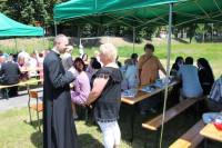 Msza Święta zaplanowana na godz. 11.00 rozpoczęła się z kilkuminutowym opóźnieniem. Przed Eucharystią prowadzony był różaniec, a także istniała możliwość skorzystania z Sakramentu Pokuty i Pojednania. Po zakończonej Mszy Świętej, której przewodniczył Ks. Rektor Piotr Kot, przeszliśmy na teren boiska, gdzie spożyliśmy posiłek. Aktywne spędzenie tego czasu umożliwił seminaryjny zespół muzyczny, który wykonywał piosenki religijne i biesiadne.