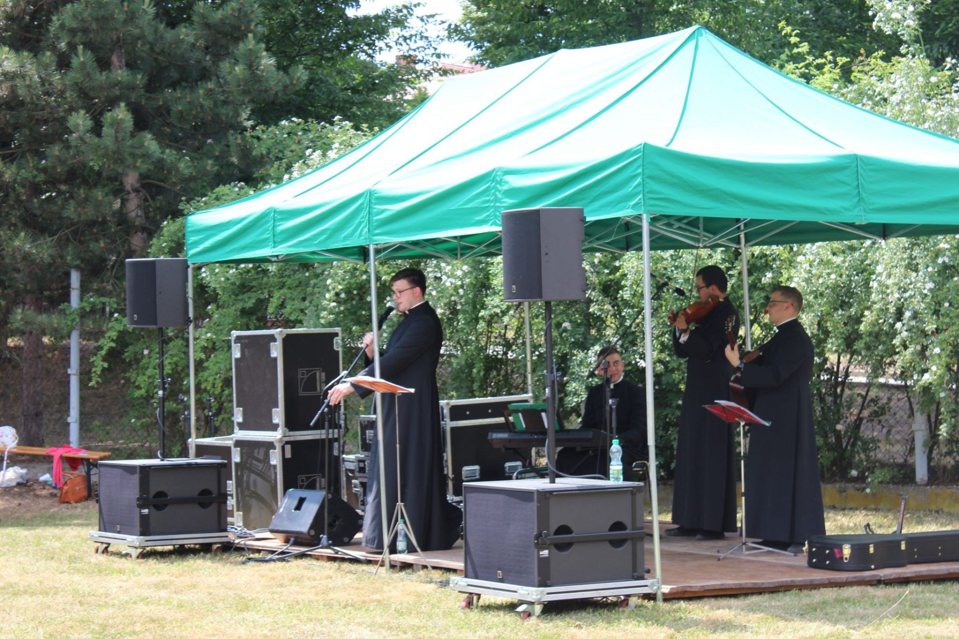 Druga część naszego spotkania miała miejsce na boisku seminaryjnym, gdzie każdy mógł skorzystać z przygotowanego posiłku. Czas dzielenia się i radości dopełnił występ zespołu „Presbiteri”, składający się z księży absolwentów naszego seminarium. Wszyscy mogli podziwiać wielkie talenty wokalne i muzyczne ks. Mateusza Maleńczuka, ks. Mateusza Nawrota, ks. Szymona Opały oraz ks. Artura Jaguszczaka. Wydarzenie uwieńczyło nabożeństwo czerwcowe pod przewodnictwem ks. Mateusza Kopani, prefekta WSD.