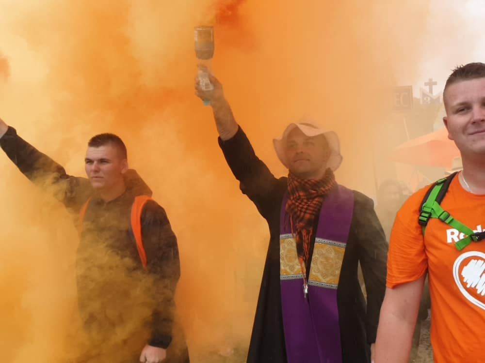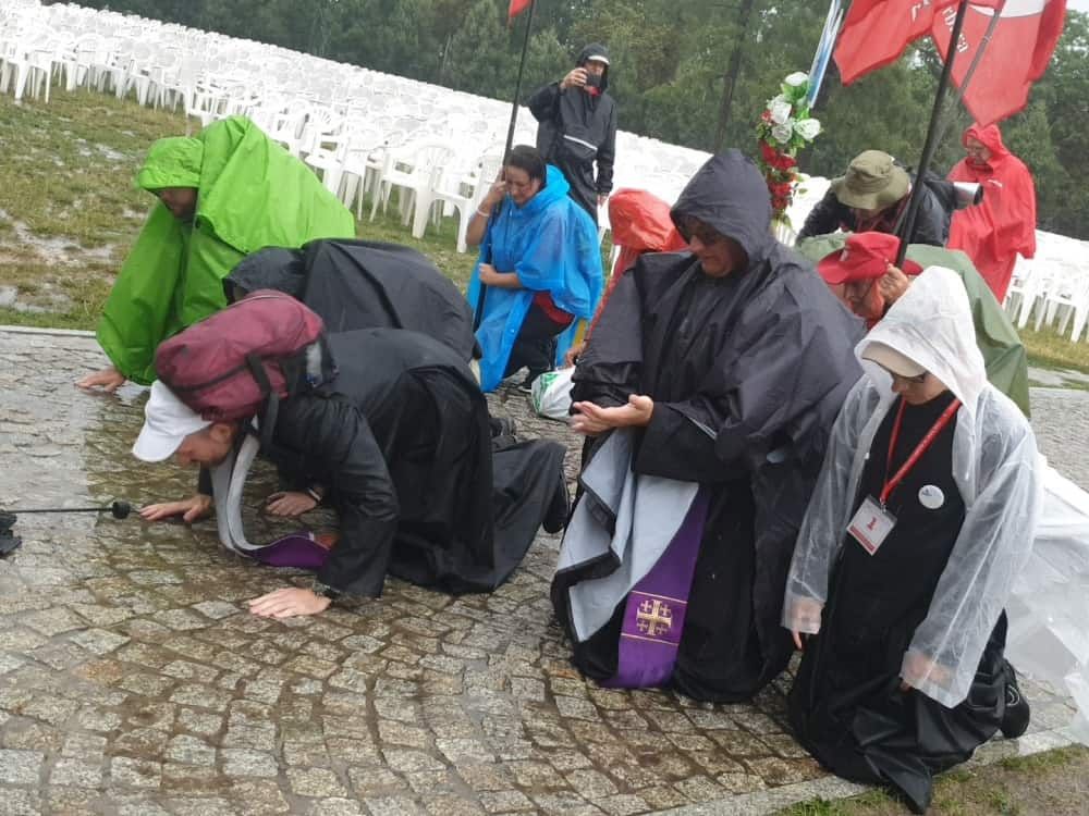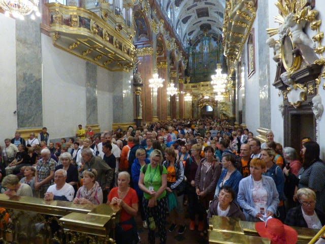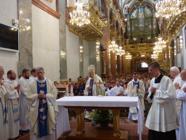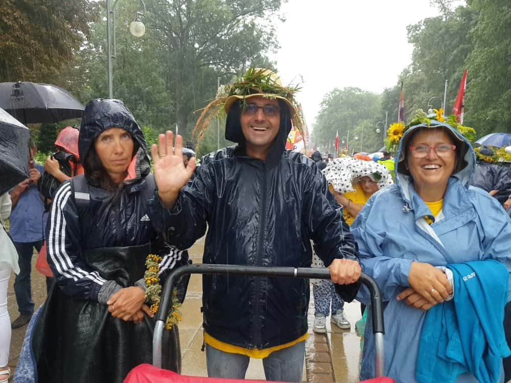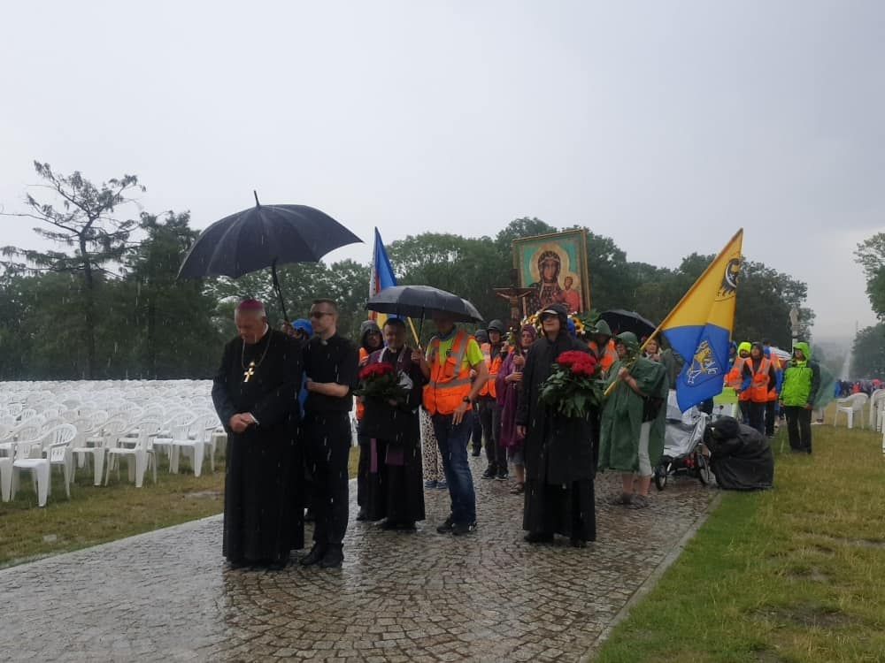 Jasnogórskie powitanie w deszczu. Blisko 700 legnickich pielgrzymów dotarło do celu. Ostatni etap z Kawodrzy na Jasną Górę, jak również samo powitanie na szczycie, pielgrzymi pokonali w ulewnym deszczu. Mimo niesprzyjającej pogody, pątnikom towarzyszyła radość i szczęście, że udało im się dojść. Po prezentacji poszczególnych grup, uczestnicy pielgrzymki legnickiej, na czele z Biskupem Legnickim Zbigniewem Kiernikowskim, udali się do kaplicy Cudownego Obrazu Matki Bożej Królowej Polski, by tam zostawić swoje intencje, z którymi przez 10, 12, a nawet 14 dni wędrowali. Następnie w Bazylice została odprawiona uroczysta Msza święta dziękczynna na zakończenie 27 Pieszej Pielgrzymki z Legnicy na Jasną Górę. Eucharystii w intencji wszystkich pielgrzymów przewodniczył Biskup Legnicki Zbigniew Kiernikowski w gronie ponad 60 księży, zarówno tych, którzy pieszo wędrowali, ale i tych, którzy przyjechali z pielgrzymami autokarami.