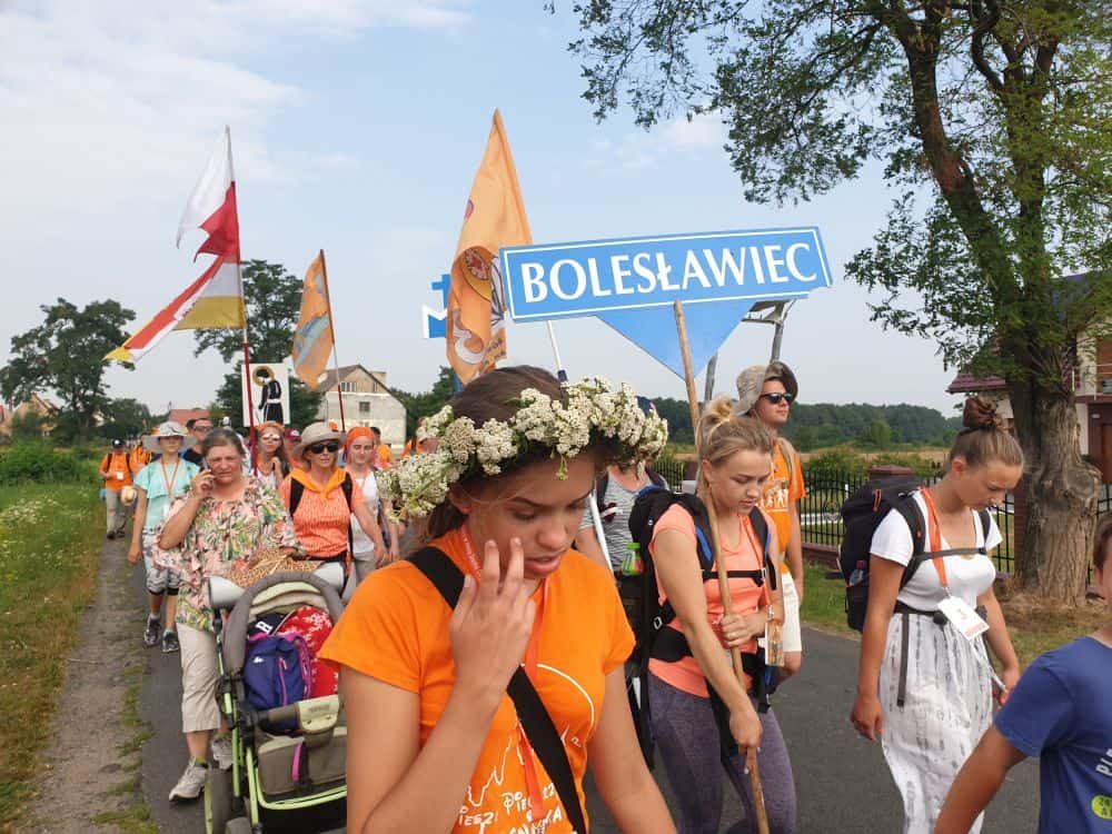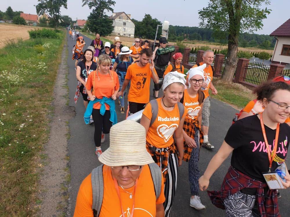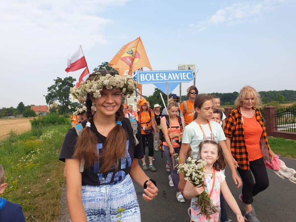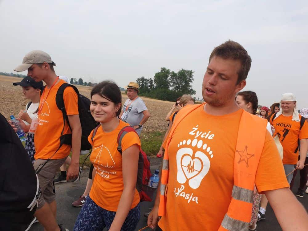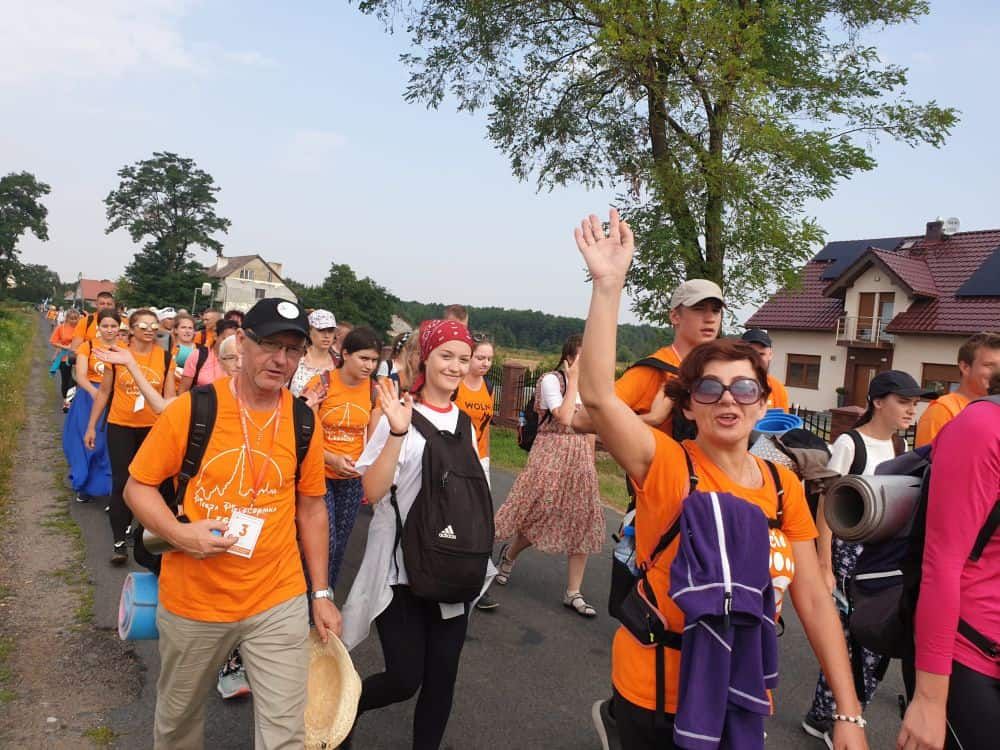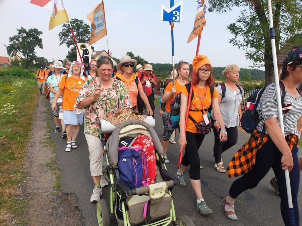 Pomarańczowy blask bije z daleka. Tej grupy nie da się nie zauważyć. Trójka na pielgrzymkowym szlaku to pątnicy m.in. z Bolesławca, Nowogrodźca i Chojnowa. Koszulki, flagi, a nawet chusty – wszystko w kolorze pomarańczowym – to ich znak rozpoznawczy. Od piątku ( 26 lipca) wędrują pod przewodnictwem ks. Dawida Kosteckiego. Grupa liczy około 130 osób. Do Matki idą rodziny, przyjaciele, osoby starsze, ale największą grupę stanowi młodzież.