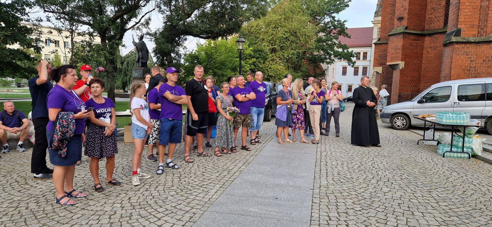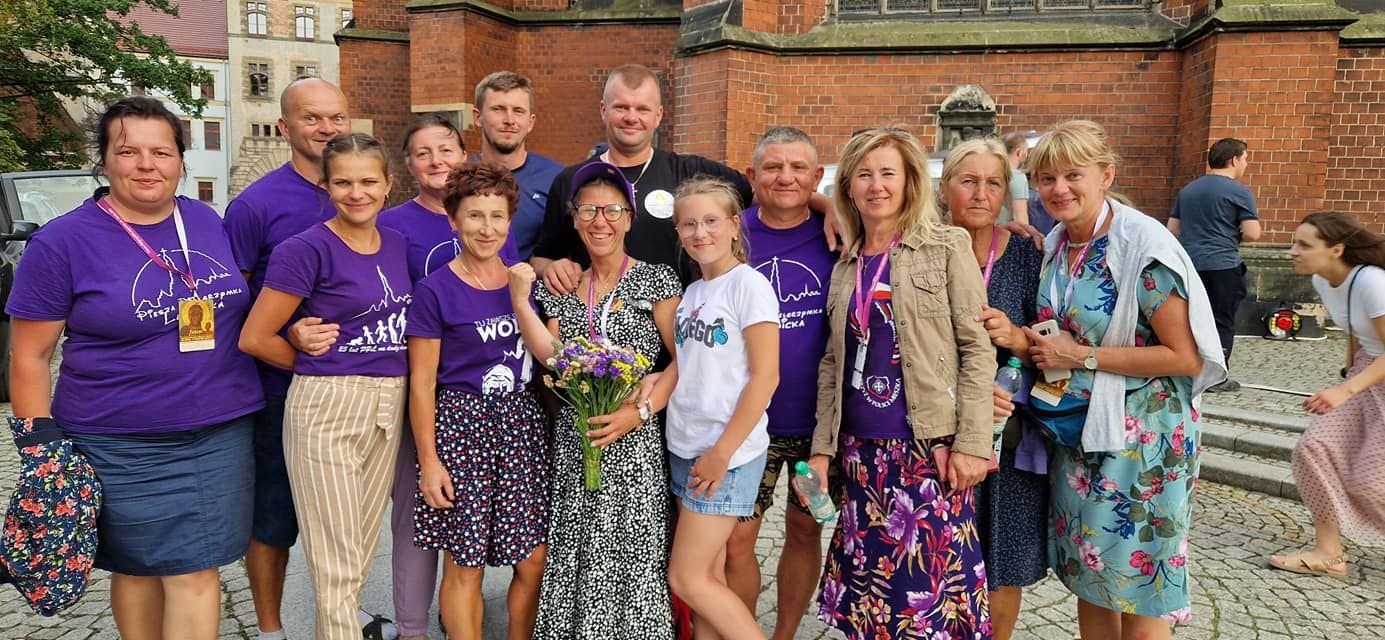 Grupa nr 5 ze Zgorzelca jest już 7 dzień w drodze. Sobota (30 lipca) zarówno dla nich, jak i całej legnickiej pielgrzymki była dniem oczyszczenia. Od rana aż do niedzielnego poranka padał ulewny deszcz. Pątnicy byli przemoczeni do przysłowiowej suchej nitki. Dziś (31 lipca) na pielgrzymkowy szlak wróciło słońce. Fioletowa grupa liczy około 50 osób. To mieszkańcy Zgorzelca, Bogatyni, Węglińca, Nowogrodźca i Lwówka Śląskiego. Wędrówce patronuje im Św. Jadwiga. „Piąteczka” jak brzmią słowa ich hymnu „Od Zgorzelca idzie z własnej woli”.