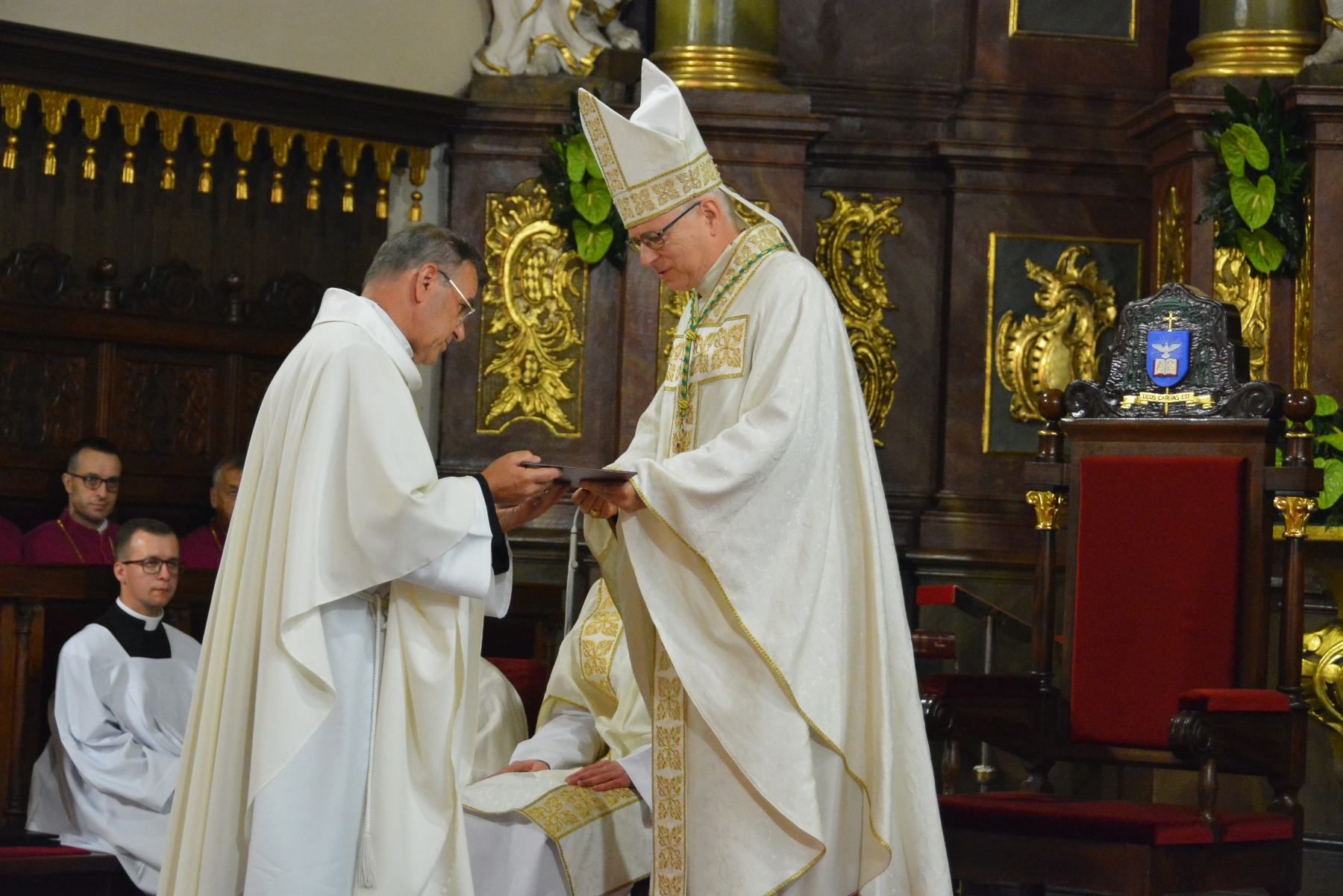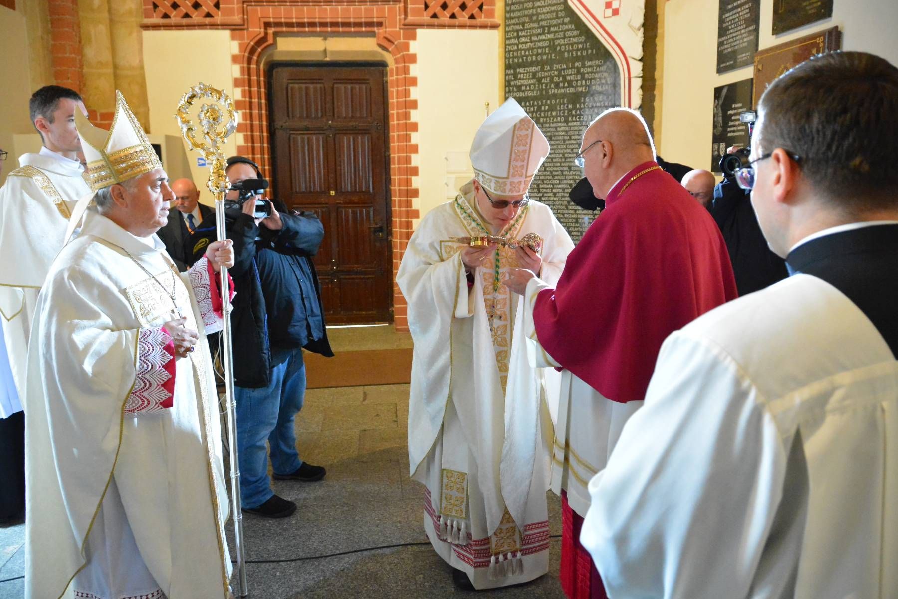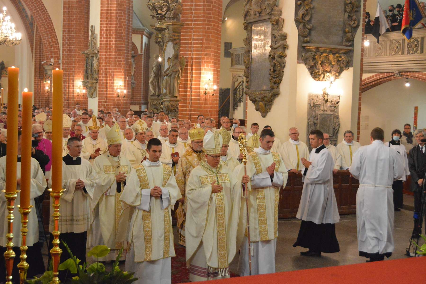 Uroczystość rozpoczęła się procesją, która wyruszyła z domu parafii katedralnej. W drzwiach katedry Pasterza powitał prepozyt Kapituły Katedralnej i proboszcz ks. Robert Kristman. Następnie dokument Stolicy Apostolskiej odczytał kanclerz ks. Józef Lisowski. Uroczystego przekazania pastorału i wprowadzenia na katedrę dokonali abp Salvatore Pennacchio i abp Józef Kupny. Homagium zaś złożyli przedstawiciele duchowieństwa, osób konsekrowanych oraz wiernych świeckich. Uroczystą homilię podczas Eucharystii wygłosił biskup legnicki Andrzej Siemieniewski.