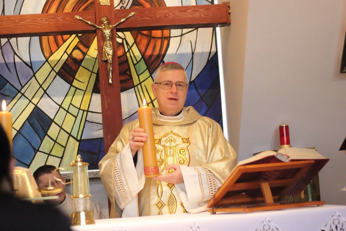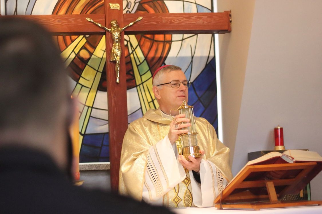 Biskup Siemieniewski najpierw odprawił Eucharystię, na której obecni byli zarówno osadzeni, jak i kadra aresztu. Ordynariusz diecezji legnickiej w homilii wskazał na lampkę bez płomienia, którą ze sobą przywiózł. Wspominając Betlejemskie Światełko Pokoju powiedział, że nawet lepiej, że go ze sobą nie przywiózł, ponieważ o wiele ważniejszy jest płomień żywej wiary, który zapłonął 2 tys. lat temu w Betlejem. A teraz, niesiony przez całe wieki i pokolenia wierzących, może on być udziałem także osadzonych. Symbolem rozpalania wiary małymi krokami jest zaś wieniec adwentowy, na którym płoną w tej chwili tylko dwie świece. - Jak widzimy jest więc jeszcze coś do zapalenia. Może chodzi o wybaczenie komuś, może o naprawdę krzywd? Ale mamy Adwent, a to dobry czas na próbę rozpalenia kolejnych świec w naszych sercach. A światło świecy najlepiej widać w mroku. Ono daje wówczas najwięcej nadziei. Dlatego warto podjąć wysiłek i spróbować zapalać kolejne świece w sercu - mówił biskup Siemieniewski.
