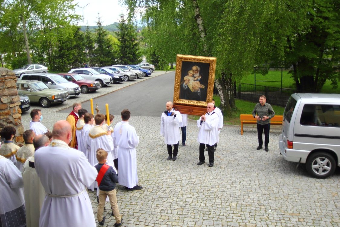 Tutaj też odbyło się powitanie obrazu Opiekuna Zbawiciela. Procesyjnie został wniesiony do kościoła i umieszczony w bocznej nawie, tuż przy obrazie Świętej Rodziny.