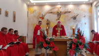14-ego września, w święto Podwyższenia Krzyża Świętego, w Domu Biskupa Legnickiego zgromadzili się kapłani, którzy w tym roku przeżywają 10 rocznicę święceń prezbiteratu. Sprawując Eucharystię pod przewodnictwem Biskupa Legnickiego Zbigniewa Kiernikowskiego pragnęli oni wyrazić Bogu wdzięczność za przeżyte lata kapłaństwa oraz prosić o wszelkie łaski na dalsze jego lata. W homilii Ksiądz Biskup nawiązując do tajemnicy przeżywanego święta zachęcał, aby swoją posługę przeżywali stawiając zawsze w centrum tajemnicę Chrystusa ukrzyżowanego i zmartwychwstałego oraz od Niego uczyli się posłuszeństwa wiary okazanego właśnie w misterium Krzyża.