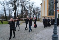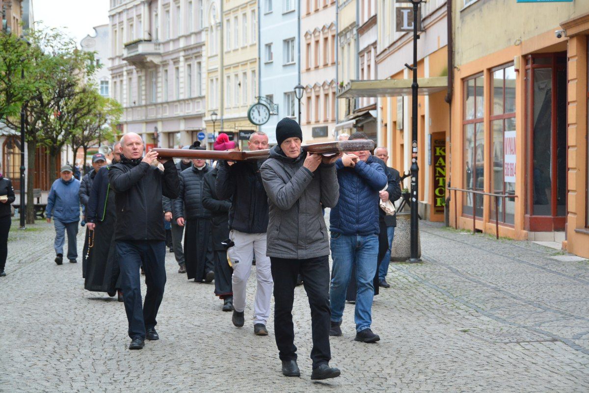 Jubileuszowy krzyż, który był niesiony na czele pielgrzymki, przewędrował ulicami centrum Jeleniej Góry, do bazyliki św. Erazma i Pankracego, gdzie w południe sprawowana była Msza św.
