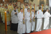 Wspólnie z kapłanami modliły się siostry zakonne, ministranci i lektorzy oraz wierni, którzy w tym dniu składali życzenia swoim duszpasterzom.
