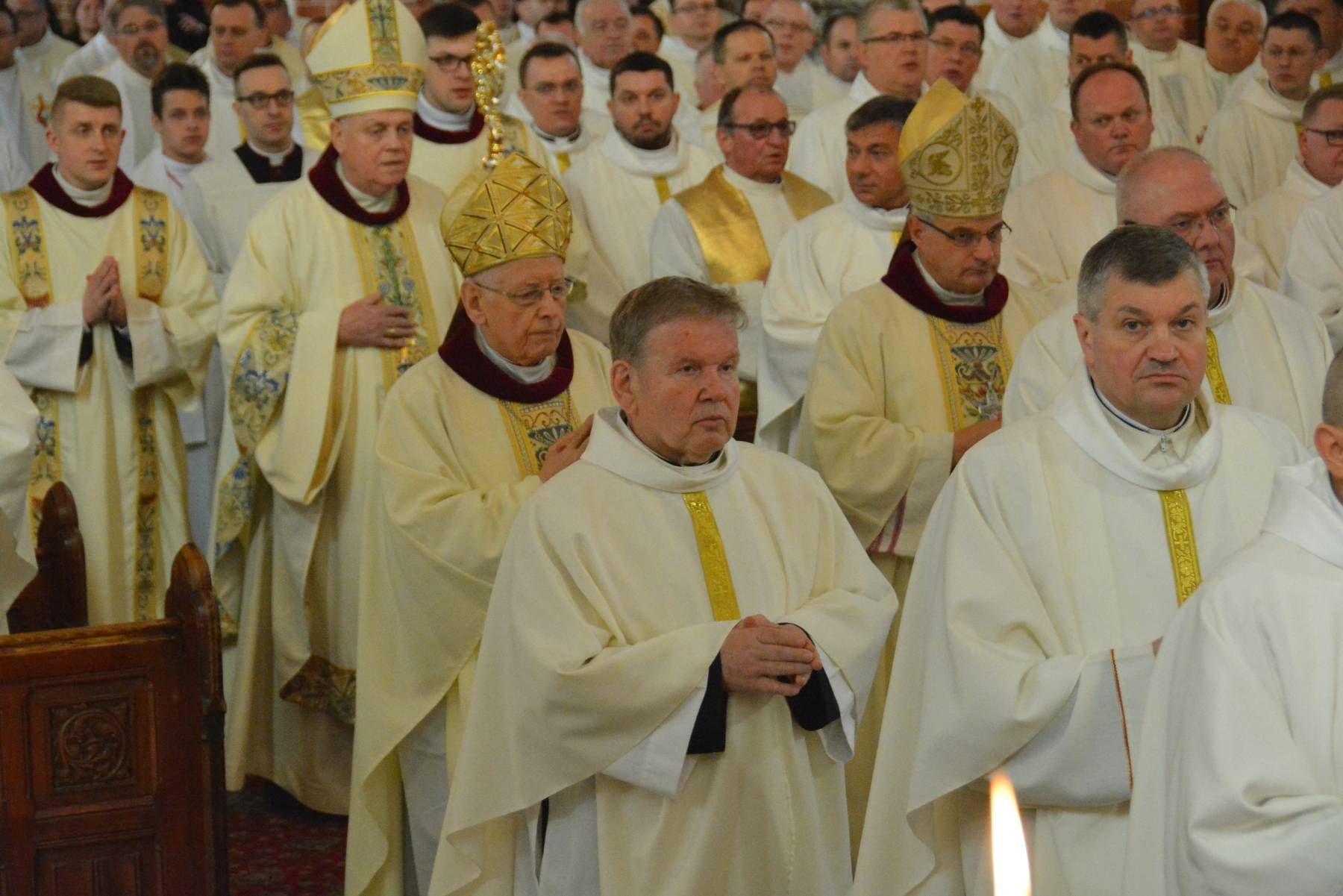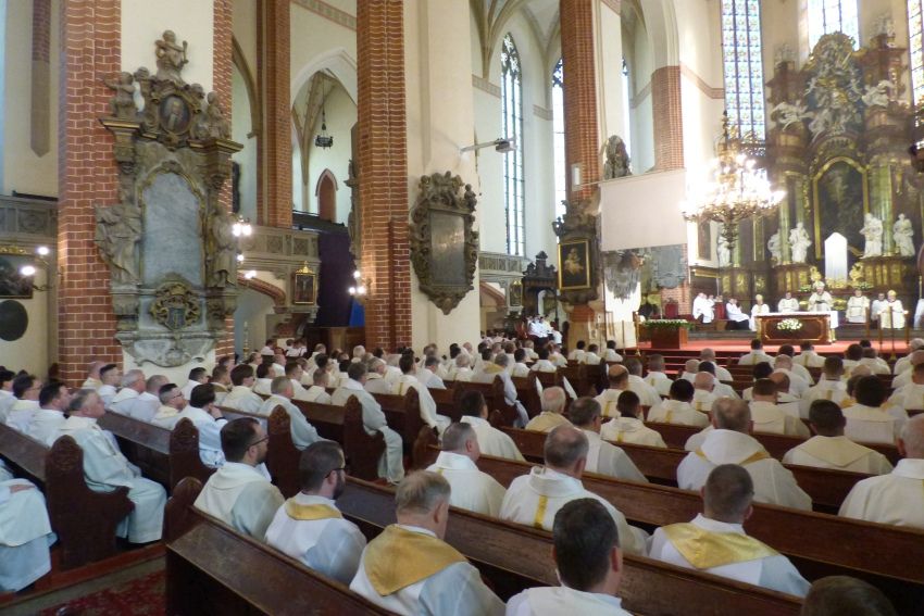 Eucharystię koncelebrowali: biskup Marek Mendyk, biskup senior Stefan Cichy i ponad 160 księży z całej diecezji legnickiej. Podczas uroczystej Eucharystii kapłani odnowili przyrzeczenia składane w dniu święceń, poświęcone zostały również oleje: chorych, katechumenów oraz krzyżma, których używa się przy sprawowaniu sakramentów m.in. chrztu, bierzmowania, święceń kapłańskich czy też sakramentu namaszczenia chorych.