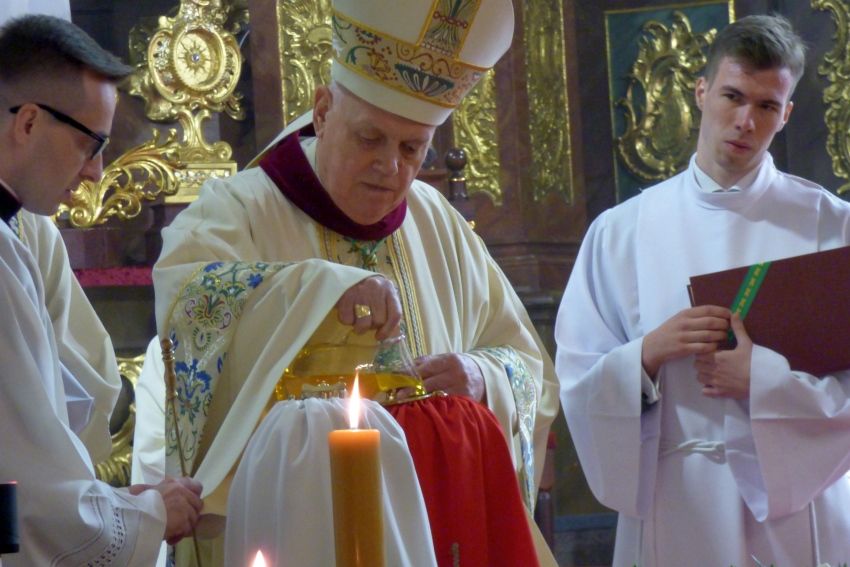 Dziś Wielki Czwartek - dzień ustanowienia Sakramentu Eucharystii i Kapłaństwa. W Katedrze legnickiej została odprawiona uroczysta Msza św. Krzyżma, której przewodniczył biskup legnicki Zbigniew Kiernikowski.