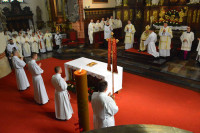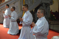 W sobotę w Katedrze biskup legnicki Zbigniew Kiernikowski udzielił święceń diakonatu 4 alumnom V roku WSD. W uroczystości wzięli udział klerycy, przełożeni i wykładowcy seminarium, rodzice i krewni kandydatów do święceń oraz księża proboszczowie z rodzinnych parafii alumnów. Nie zabrakło też sióstr zakonnych oraz przedstawicieli parafii, z których pochodzą nowi diakoni.