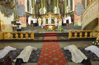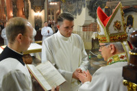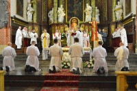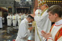 W sobotę w legnickiej katedrze odbyły się święcenia diakonatu. Pierwszy stopień święceń przyjęło dwóch alumnów 5 roku seminarium duchownego oraz 4 dorosłych mężczyzn, którzy pełnić będą posługę diakonów stałych. Święceń udzielił biskup legnicki Andrzej Siemieniewski. W uroczystości wzięli udział bp pomocniczy Piotr Wawrzynek, biskup senior Stefan Cichy, przełożeni i wychowawcy wrocławskiego Seminarium, w którym odbywają formację również klerycy legniccy, pracownicy Legnickiej Kurii Biskupiej i Domu Słowa, księża proboszczowie oraz zaproszeni kapłani. Obecne były siostry zakonne i bliscy wyświęconych diakonów.