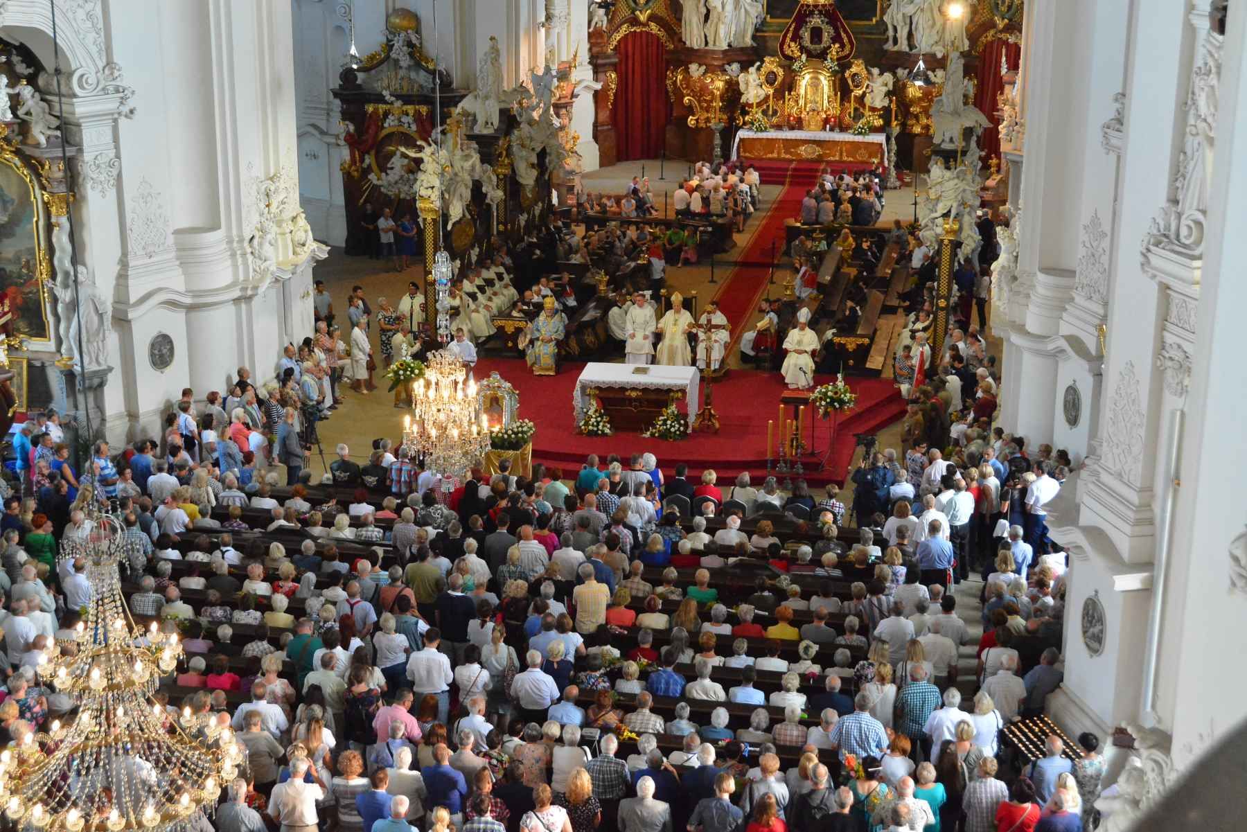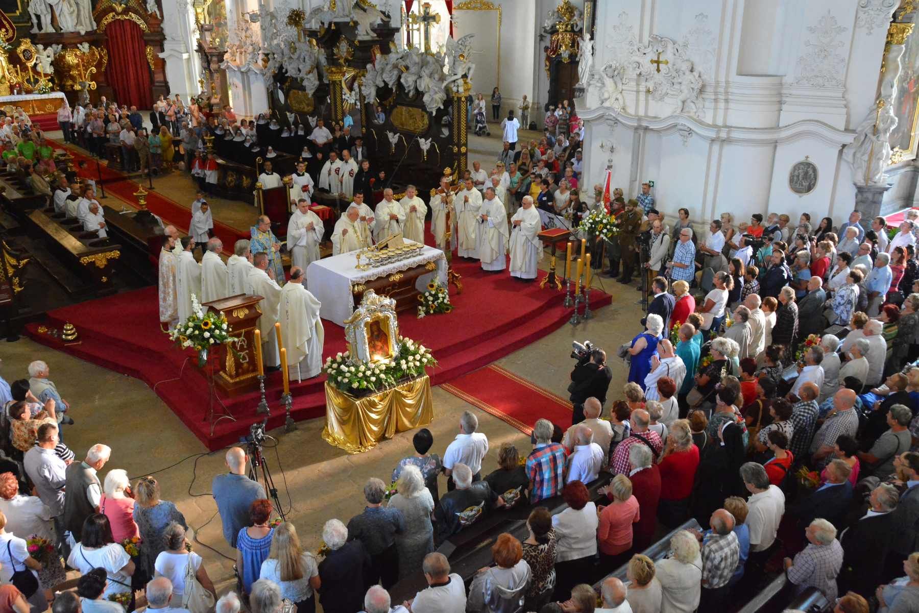 Kilka tysięcy wiernych z Dolnego Śląska oraz całej Polski wzięło udział w wielkim odpuście krzeszowskim ku czci Maryi Wniebowziętej. Głównej sumie odpustowej o g. 12 przewodniczył biskup legnicki Zbigniew Kiernikowski, homilię wygłosił biskup Kościoła greckokatolickiego Włodzimierz Juszczak, obecny był także bp pomocniczy Marek Mendyk oraz księża z diecezji legnickiej, z Czech i goście z Polski, siostry zakonne oraz wielka rzesza pielgrzymów, w tym po raz kolejny do sanktuarium przyjechali motocykliści. W modlitwie uczestniczyli także rycerze i damy Zakonu Świętego Grobu Bożego, a także przedstawiciele Związku Żołnierzy Narodowych Sił Zbrojnych. Nie zabrakło też przedstawicieli władz parlamentarnych i lokalnych. Po Mszy św. odbyła się tradycyjna procesja z ikoną Matki Bożej Łaskawej oraz poświęcone zostały wiązanki ziół i kwiatów. Dla wszystkich gości przygotowano festyn z wieloma atrakcjami. Na scenie przy bazylice odbył się także koncert, podczas którego wspólnie śpiewano pieśni patriotyczne.