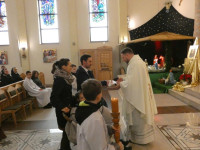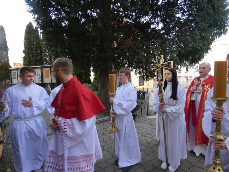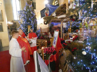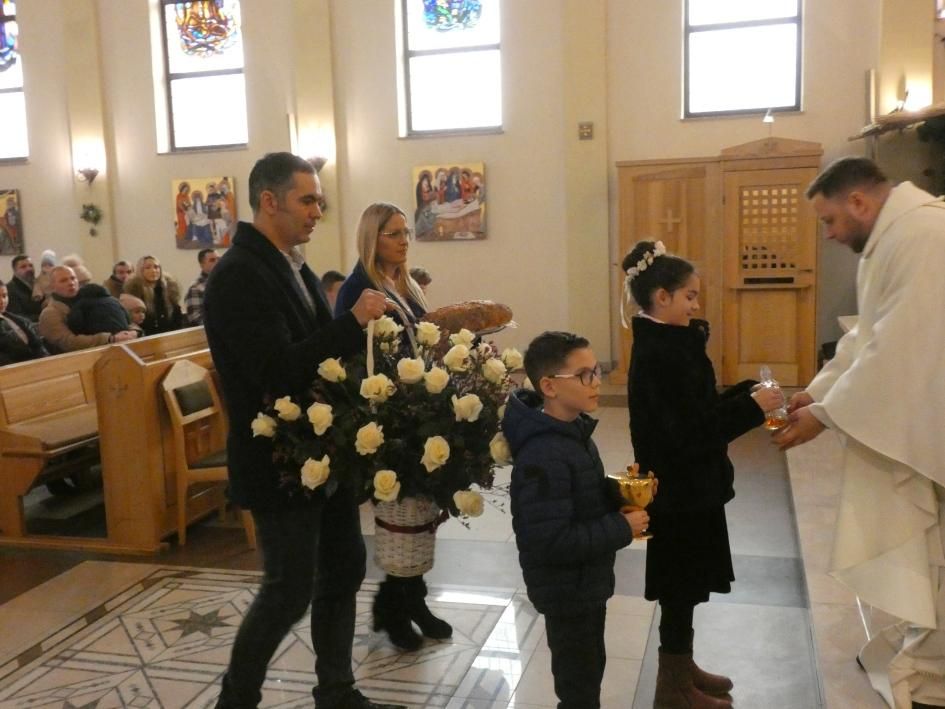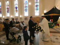 Relikwiarz z relikwiami, wniósł uroczyście do świątyni proboszcz parafii O. Jan Grzywna OFM Conv. On też przewodniczył też Mszy św. i wygłosił homilię. Poświęcił ją tematowi rodziny.