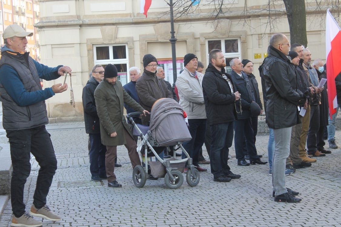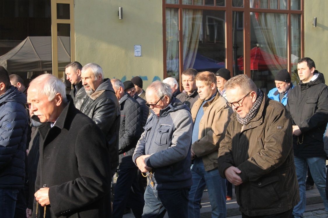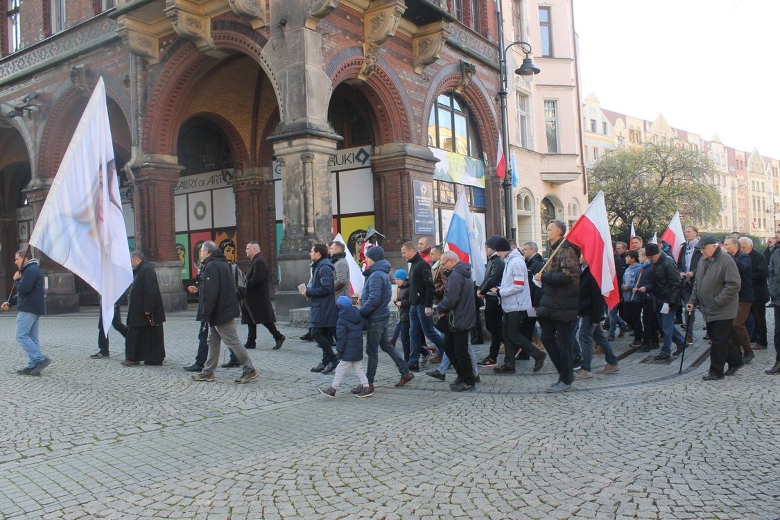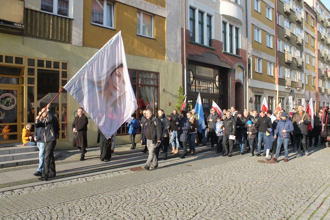 Członkowie wspólnoty zawiązanej przy parafii pw. Świętej Rodziny zorganizowali modlitewno-patriotyczny pochód przez miejski rynek.