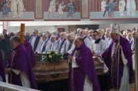 Zmarłego kapłana żegnała rodzina, księża z diecezji legnickiej, świdnickiej i wrocławskiej, a także przedstawiciele władz miasta, parlamentarzyści, parafianie i legniczanie.