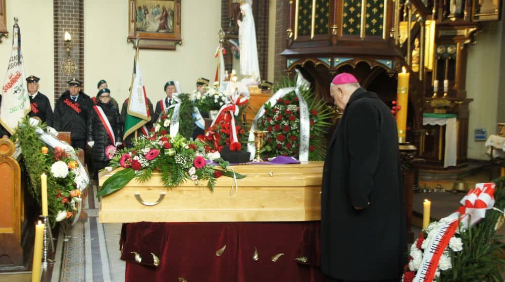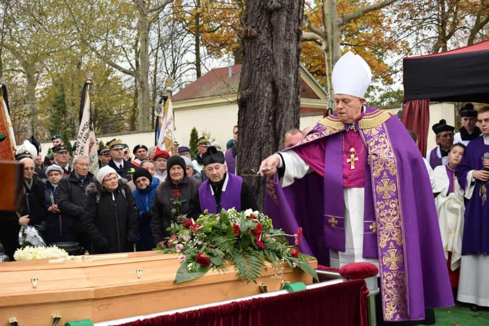 Zmarłego kapłana żegnała rodzina, 80 księży z diecezji legnickiej, świdnickiej i wrocławskiej z udział przedstawicieli Kościoła greckokatolickiego i ewangelickiego, a także przedstawiciele władz miasta, parlamentarzyści, parafianie i legniczanie. Poczty sztandarowe, reprezentacje różnych stowarzyszeń, związków zawodowych, szkół, nie zabrakło także harcerzy.