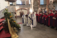 Witając ją, ks. Robert Kristman, proboszcz parafii katedralnej, powiedział: - Jest wigilia największego święta naszej świątyni - rocznicy poświęcenia tego miejsca na wyłączną służbę Bogu. Jest to najważniejszy kościół diecezji legnickiej, od kiedy papież św. Jan Paweł II powołał ją do istnienia. Stało się to 25 marca 1992 roku. Jest to więc kościół-matka dla wszystkich kościołów diecezji. Od kilku lat na ten dzień przybywa do nas kopia cudownego obrazu Matki Bożej Łaskawej z Krzeszowa. W tych dniach łączy się w naszej świątyni ważność z pięknością. Dwa najważniejsze miejsca naszej diecezji są niejako w jednym - w kościele katedralnym - mówił kapłan.