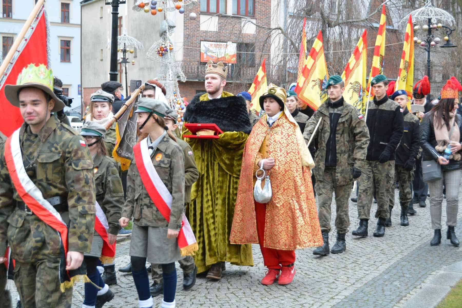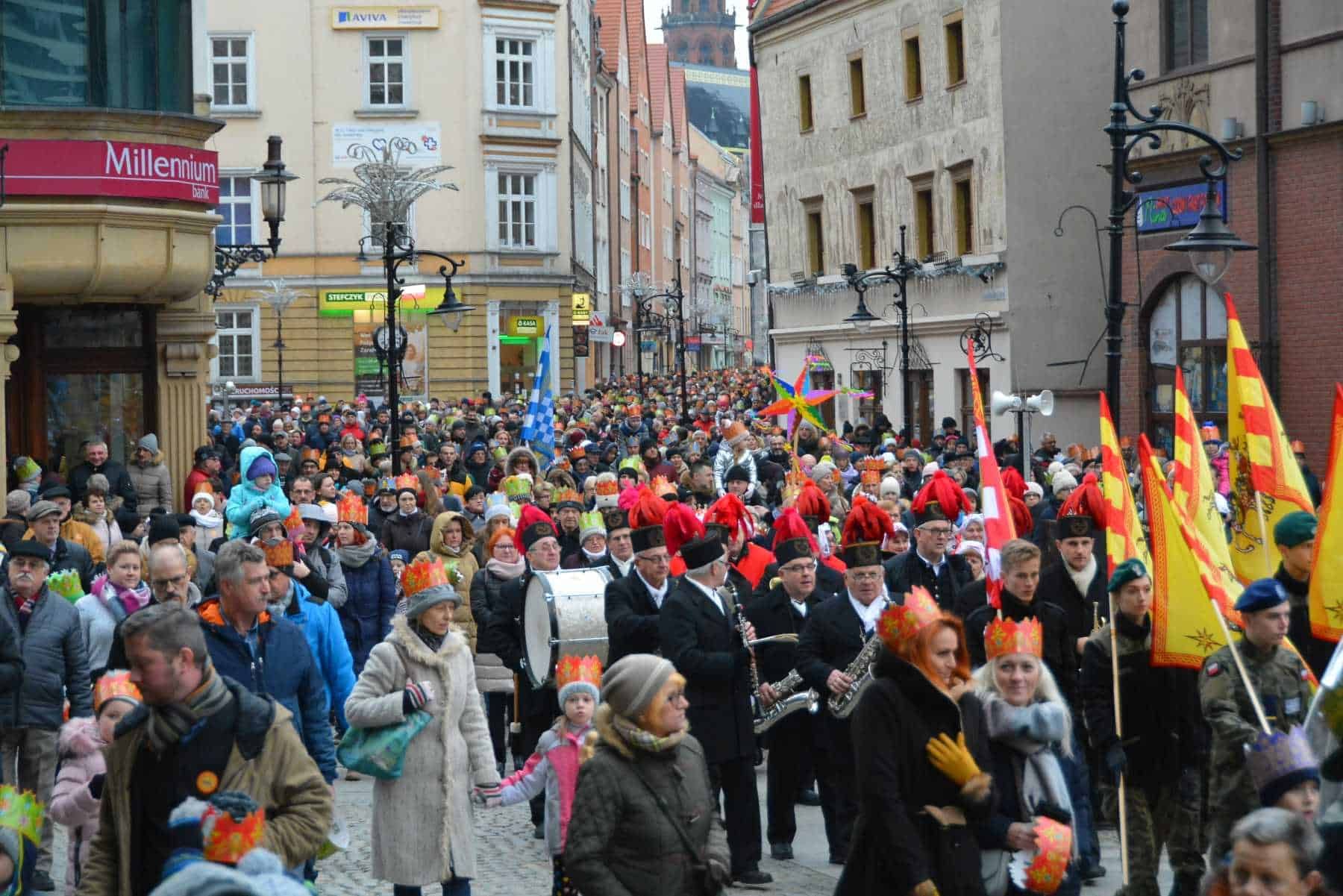 „Cuda, cuda ogłaszają...” Około 2 tysięcy legniczan wzięły udział w Orszaku Trzech Króli w Legnicy. Od 9 lat ulicami miasta organizowany jest pochód upamiętniający Mędrców ze Wschodu, którzy podążali za gwiazdą, by znaleźć nowonarodzonego Jezusa i oddać mu pokłon. Za gwiazdą betlejemską i Trzema Królami podążali aniołowie, pasterze nie zabrakło także małych księżniczek i rycerzy. Był też Henryk II Pobożny i księżna Anna. Podczas wędrówki młodzież legnickich szkół przedstawiła trzy inscenizacje związane z tajemnicą Bożego Narodzenia. W tym roku Orszak uświetniła Orkiestra Górnicza ze Złotoryi oraz zespoły folklorystyczne: „Fudżijamki” z Proboszczowa, i „Cichowodzianie” z Budziszowa Wielkiego. Przemarsz ulicami Legnicy zakończyło wspólne kolędowanie w kościele św. Jana Chrzciciela. Zanim jednak Orszak Trzech Króli ruszył ulicami Legnicy, w Katedrze Legnickiej została odprawiona uroczysta Msza święta, której przewodniczył biskup legnicki Zbigniew Kiernikowski. Orszak Trzech Króli w Legnicy zakończyło wspólne kolędowanie w kościele Św. Jana Chrzciciela.