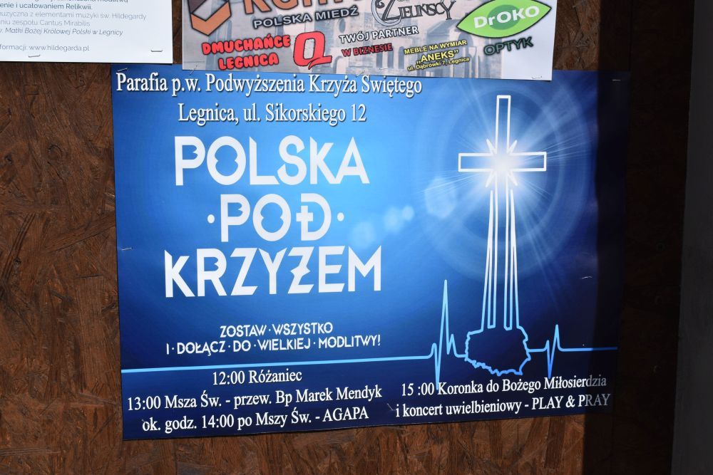 W święto Podwyższenia Krzyża Świętego w całej kraju odbyła się akcja modlitewna „Polska pod Krzyżem”. Podczas spotkania wierni modlili się w intencji Kościoła i Ojczyzny. Na placu parafii pod wezwaniem Podwyższenia Krzyża Św. w Legnicy zgromadziło się wielu mieszkańców, by wspólnie odmówić modlitwę różańcową. Następnie w kościele została odprawiona uroczysta Msza Święta odpustowa. Eucharystii przewodniczył biskup pomocniczy Marek Mendyk.