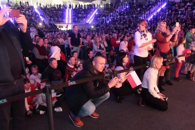 Kilka tysięcy osób przyszło do Regionalnego Centrum Sportu, by śpiewać pieśni patriotyczne.
