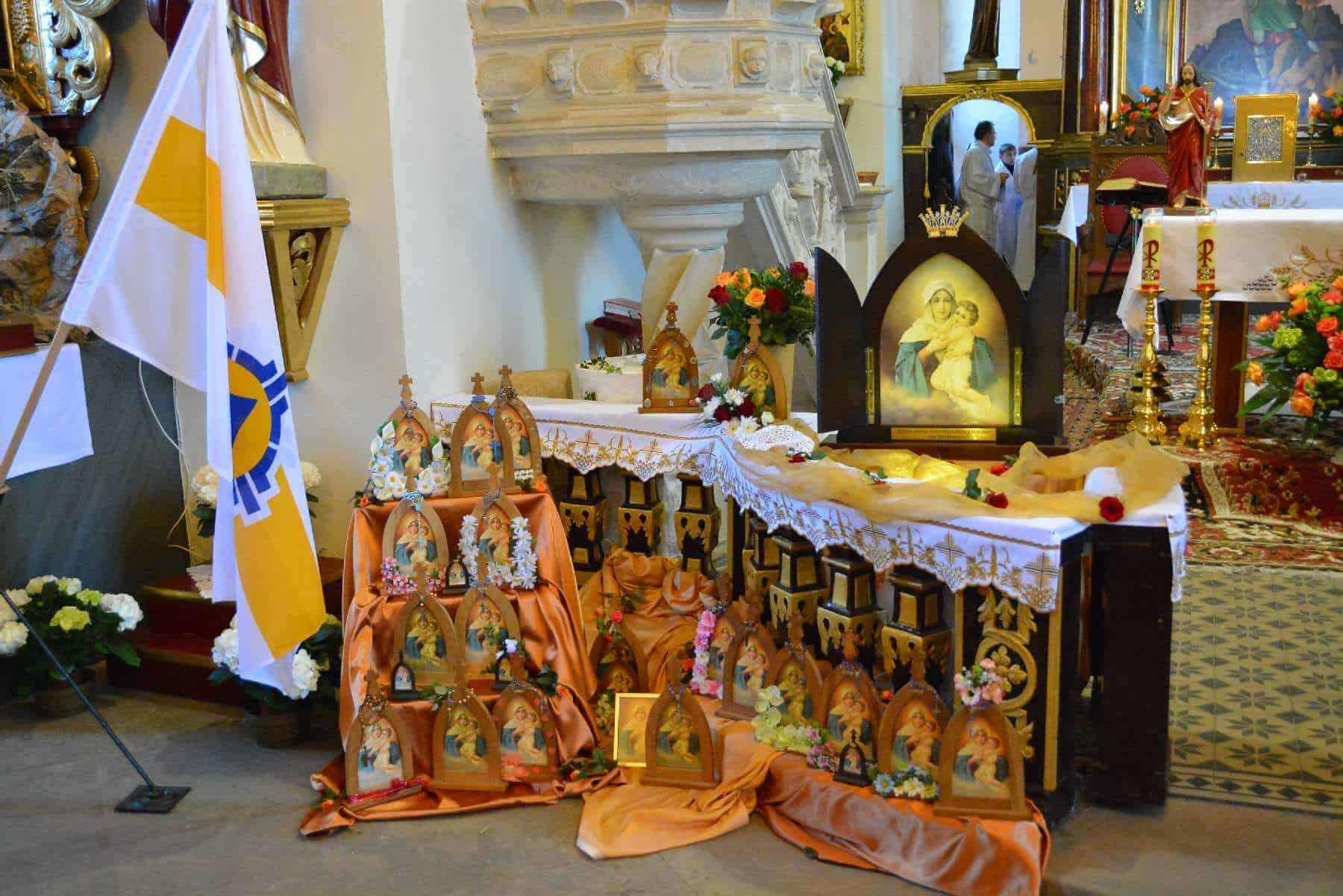 Minęło 10 lat od utworzenia w naszej diecezji pierwszego kręgu rodzin należących do Apostolatu Matki Bożej Pielgrzymującej, będącego częścią Ruchu Szensztackiego. Początki były skromne, ale determinacja i zaufanie opatrzności Bożej, i opiece Maryi państwa Marka (†) i Teresy Szyjkowskich sprawiły, że dziś wspólnota rodzin rozwija się dynamicznie. Obecnie w naszej diecezji istnieje 85 kręgów skupiających blisko 850 rodzin. W piątek 7 kwietnia w Raciborowicach sprawowana była główna Msza św. dziękczynna, której przewodniczył bp Marek Mendyk. Uczestniczyli w niej przedstawiciele wspólnot z parafii, w których istnieją kręgi rodzin, księża proboszczowie oraz s. Damiana Czogała i o. Romuald z Instytutu Ojców Szensztackich. Podczas Eucharystii bp Marek poświęcił kapliczkę, która trafiła do nowego kręgu młodych rodzin, jaki zawiązał się w parafii Raciborowice. To już ósmy krąg działający w tej parafii. Na spotkanie przyjechali także goście z diecezji katowickiej, która również przygotowuje się do podobnego jubileuszu. Spotkanie w Raciborowicach było jednym z wielu wydarzeń w ramach obchodów jubileuszu 10-lecia Apostolatu w diecezji legnickiej.