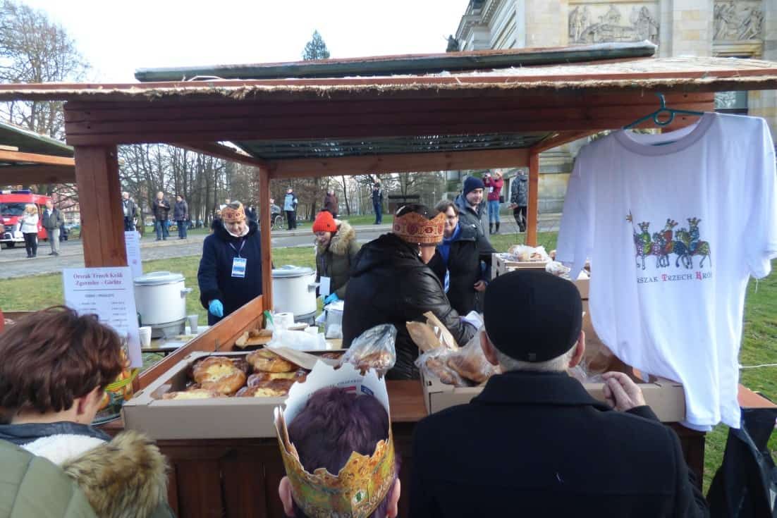 Po ostatniej odegranej scenie Pokłonu Trzech Króli, reprezentujących Europę Azję i Afrykę, uczestniczący w tym święcie, mogli pokrzepić się gorącymi napojami, szczodrakami i domowym ciastem, dostępnymi na ustawionych przed MDK stoiskach.