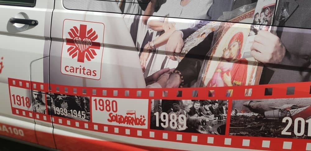 Specjalny bus Caritas Polska jeździ po kraju i zachęca do wspólnego świętowania odzyskania przez Polskę niepodległości, promuje także akcję "Rodzina rodzinie". Wolontariusze Caritas, wśród których jest Farid – młody Syryjczyk, opowiadają o dramacie wojny, jaki rozgrywa się w tym kraju, a także zachęcają do pomocy syryjskim rodzinom. W busie Mobilnej Ambasady Niepodległej podróżuje ikonę Matki Bożej Współczującej. Jest to dar Syryjczyków dla Polaków w podziękowaniu za pomoc syryjskim rodzinom. Mobilna Ambasada zatrzymała się w piątek przy Ośrodku Samarytanin w Legnicy, gdzie w kaplicy przy ikonie sprawowana była Msza św., natomiast w południe zawitała do Chojnowa. Więcej na ten temat na stronie Radia Plus Legnica
