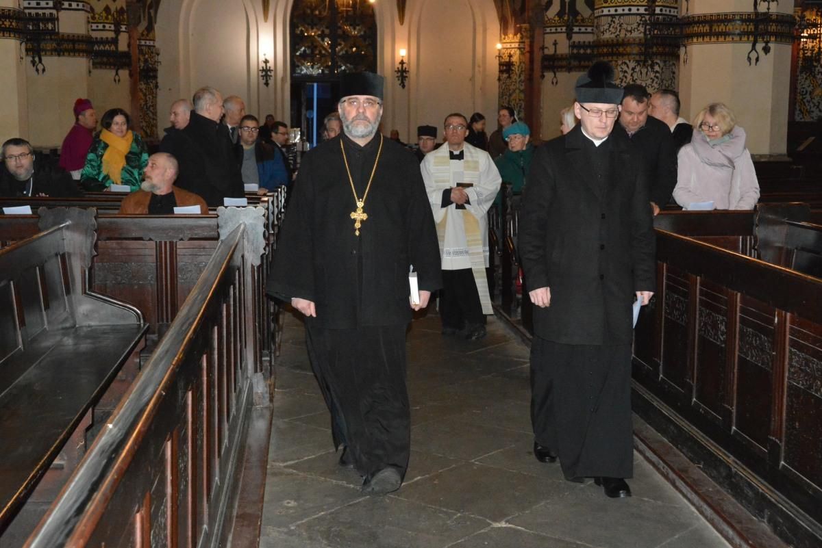 Na nabożeństwo przybyli przedstawiciele Kościołów: ewangelicko-augsburskiego z proboszczem ks. Jerzym Ganselem, prawosławnego z ks. Lubomirem Worhaczem, greckokatolickiego z ks. Mirosławem Drapałą, chrześcijan baptystów z pastorem Zbigniewem Hanaczewskim oraz katolickiego z bp. Piotrem Warzynkiem, ks. Józefem Borowskim, ks. Tomaszem Kołodziejem i ks. Mateuszem Kopanią. Nabożeństwo prowadził gospodarz spotkania ks. Jerzy Gansel, kazanie wygłosił biskup pomocniczy diecezji legnickiej Piotr Wawrzynek.