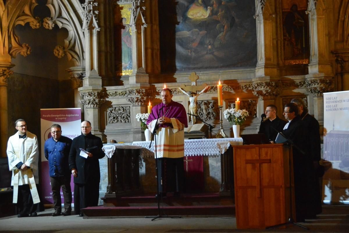 W nabożeństwie uczestniczyli wierni z Kościołów chrześcijańskich. Obecny był również Tadeusz Krzakowski, prezydent Legnicy oraz radna Joanna Śliwińska-Łokaj.