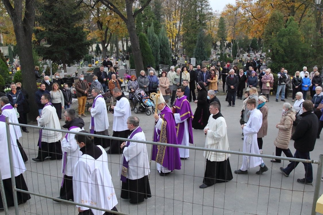 W uroczystość Wszystkich Świętych na głównym legnickim cmentarzu o godzinie 15 rozpoczęło się nabożeństwo za zmarłych. Przewodniczył mu biskup legnicki Andrzej Siemieniewski. Początek miał miejsce w odnowionej i oddanej niedawno do użytku cmentarnej kaplicy. Po liturgii słowa i krótkiej homilii biskupa, wierni ruszyli alejami cmentarza, by modlić się za zmarłych.